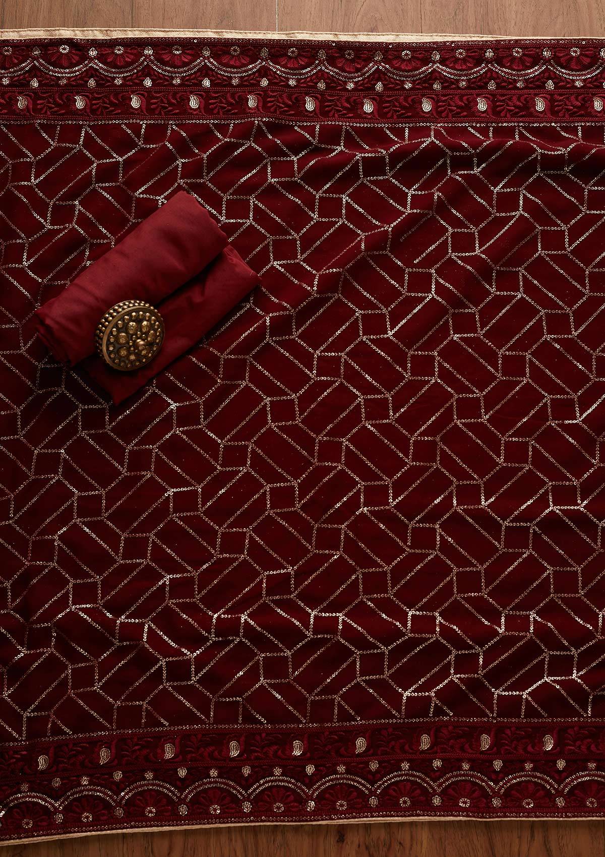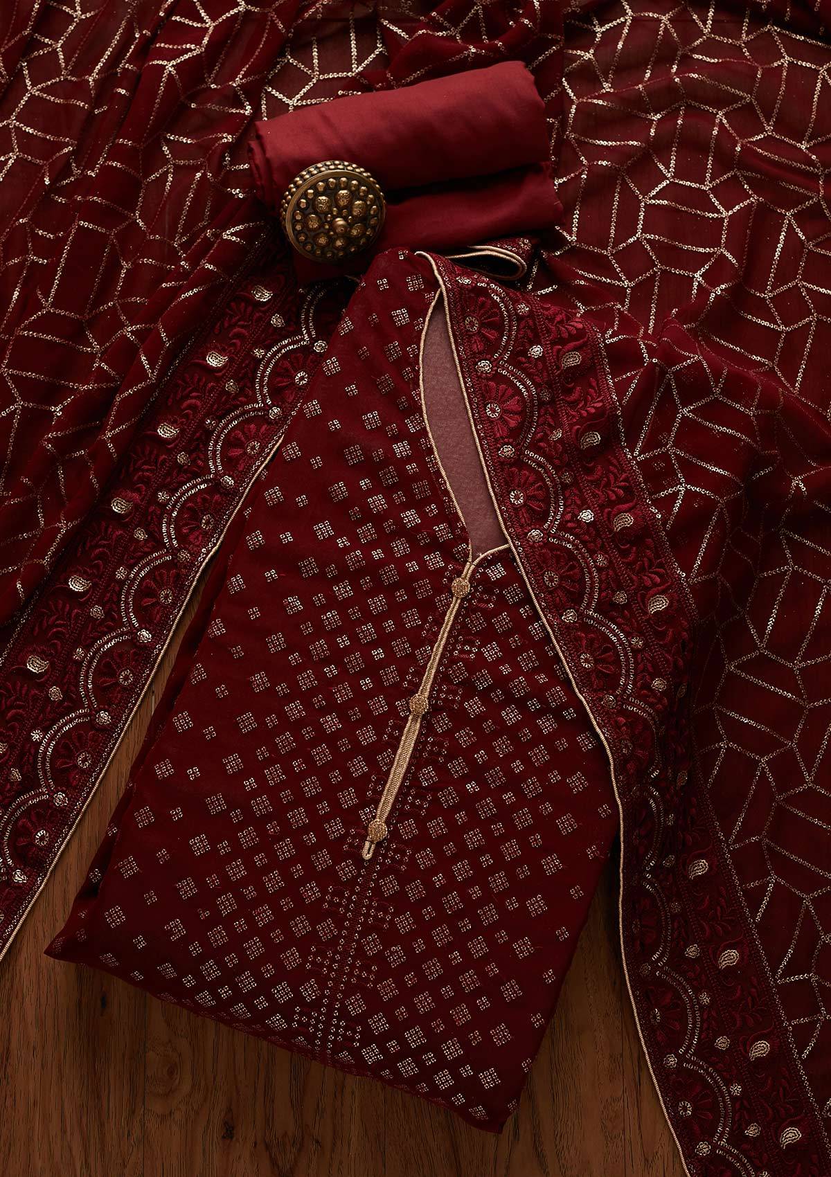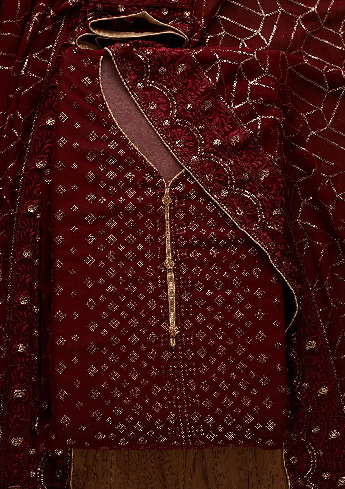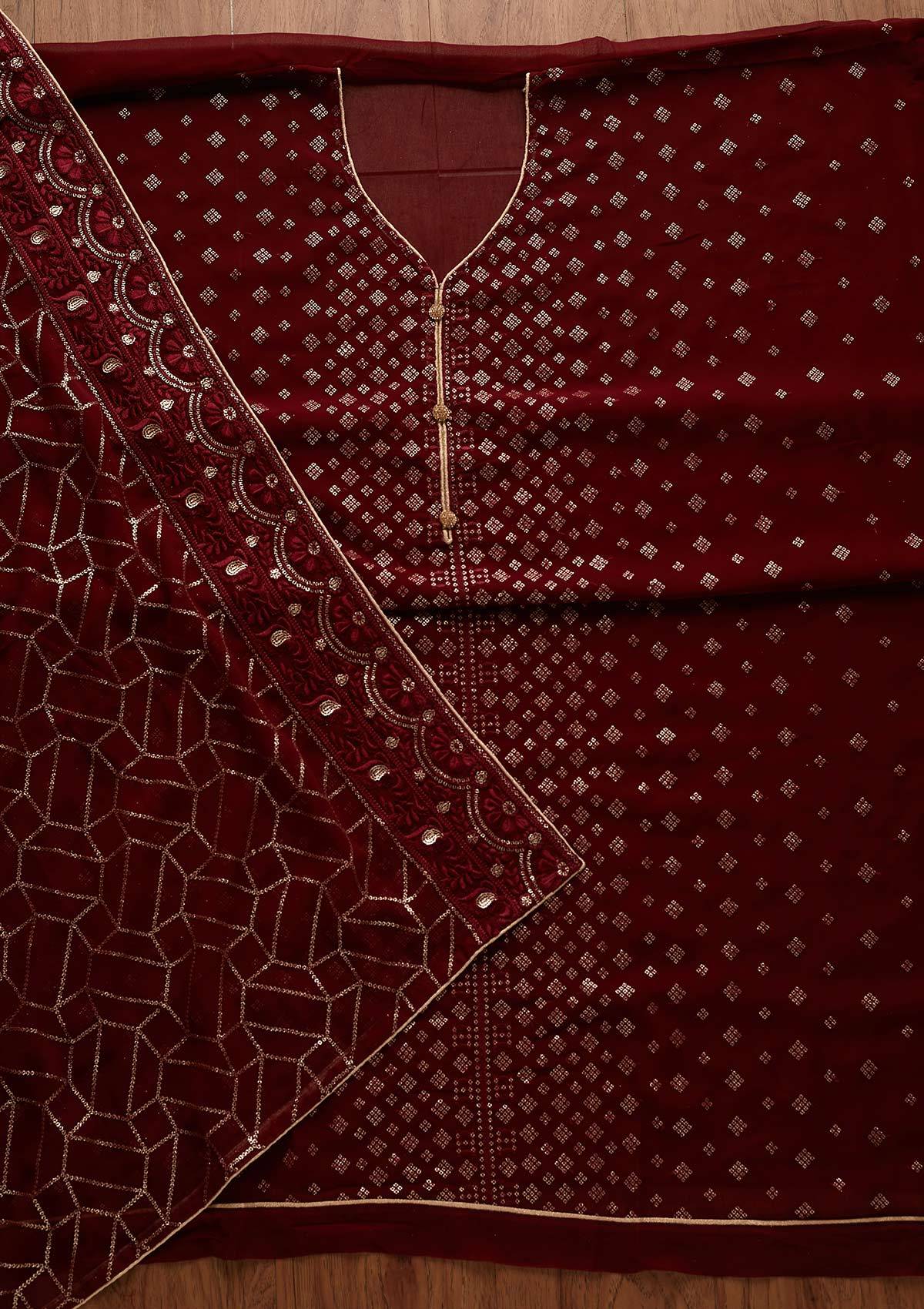 Maroon Sequins Georgette Unstitched Salwar Suit