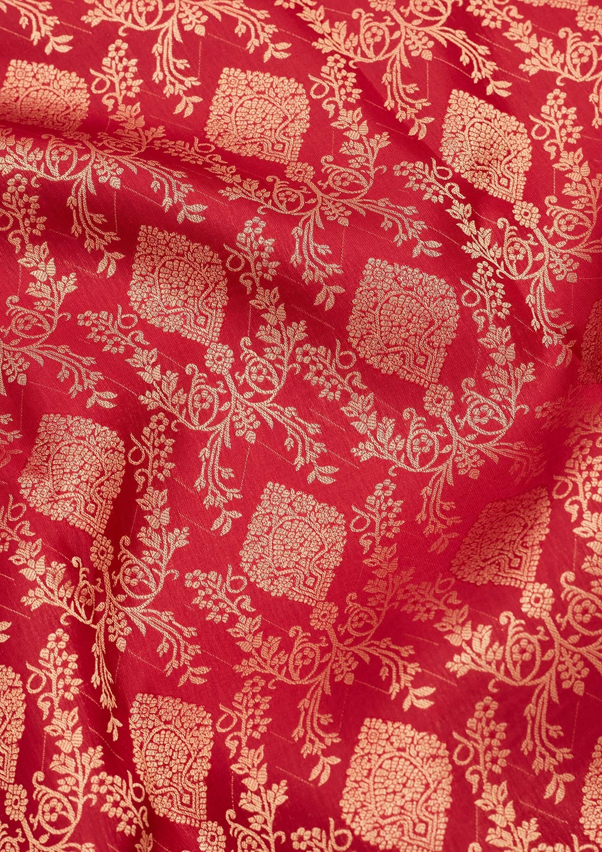 Maroon Silk Saree in Pure Silk fabric. The Silk Saree is elevated with Zariwork embroidery. It comes with an Unstitched blouse. Comes with the Koskii promise of premium quality.