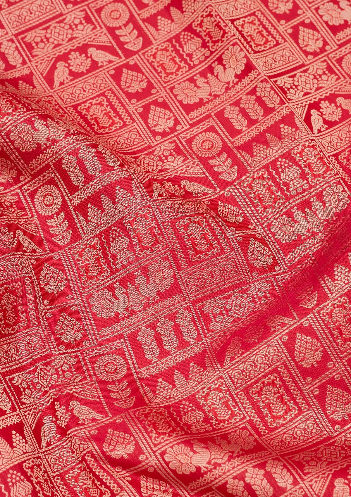 Maroon Silk Saree in Pure Silk fabric The Silk Saree is elevated with Zariwork embroidery It comes with an Unstitched blouse Comes with the Koskii promise of premium quality.