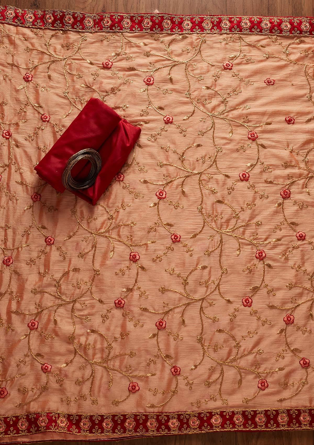 Maroon Salwar Suit In Semi Crepe Fabric. The Salwar Suit Is Embellished With Zariwork Embroidery. Accompanied with an unstitched bottom and dupatta. Comes With The Koskii Promise Of Premium Quality.