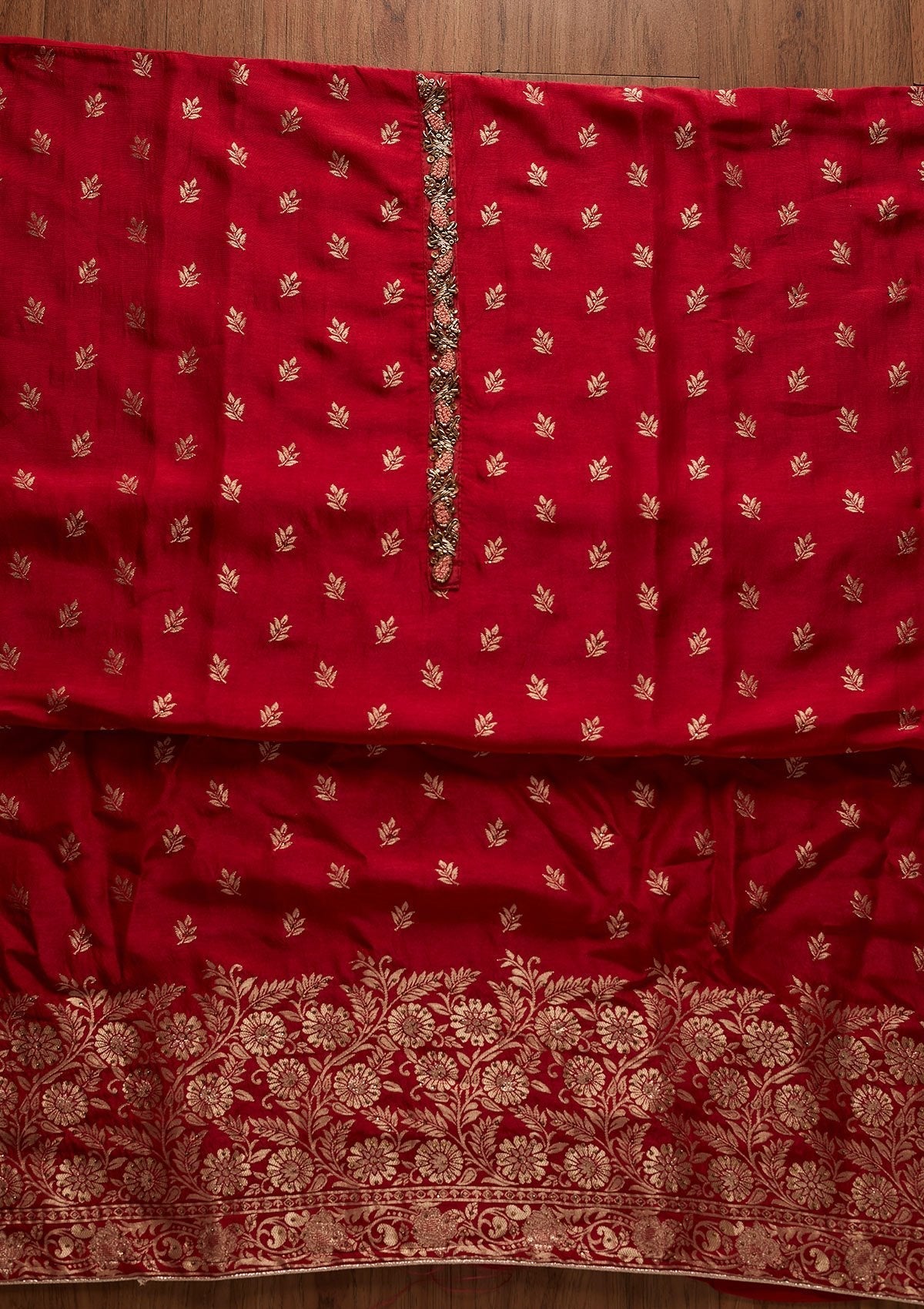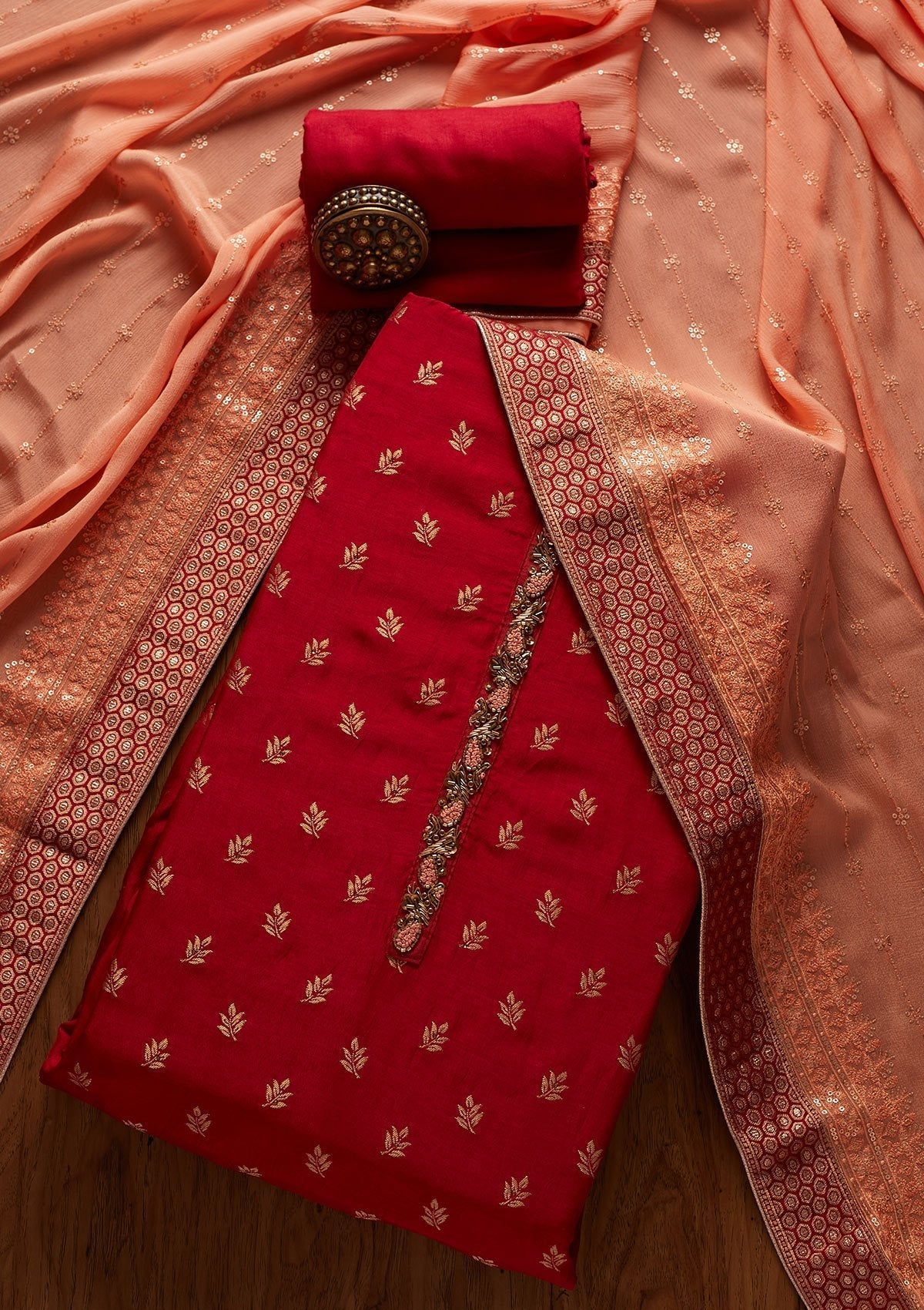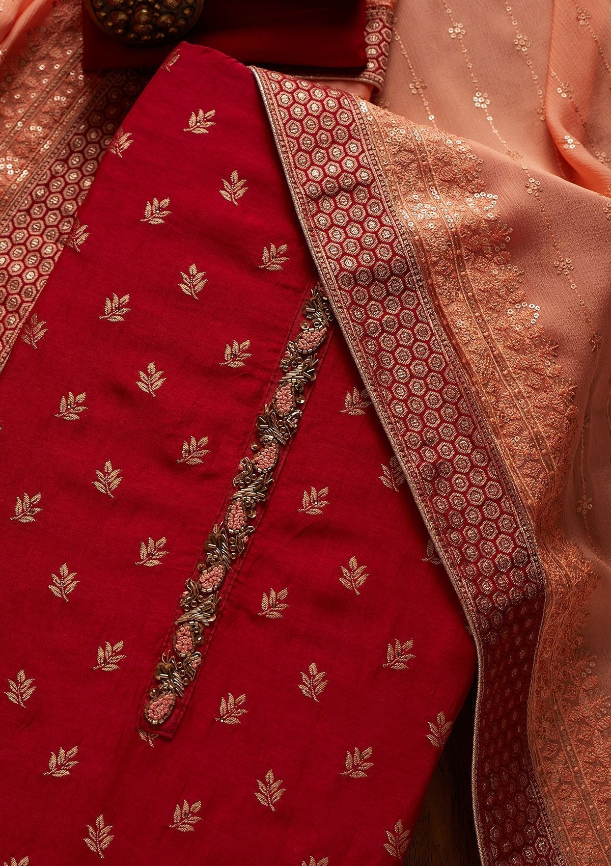 Maroon Zariwork Semi Crepe Unstitched Salwar Suit