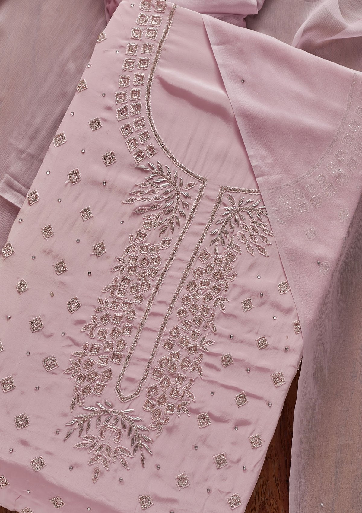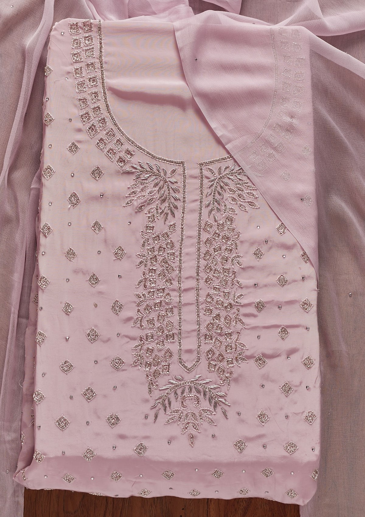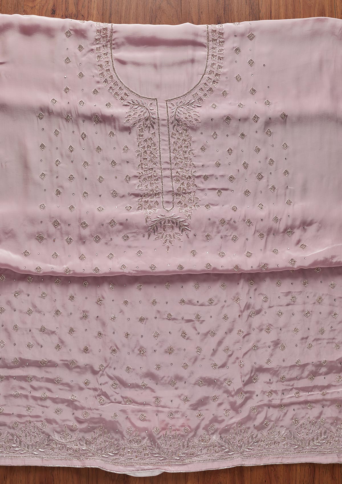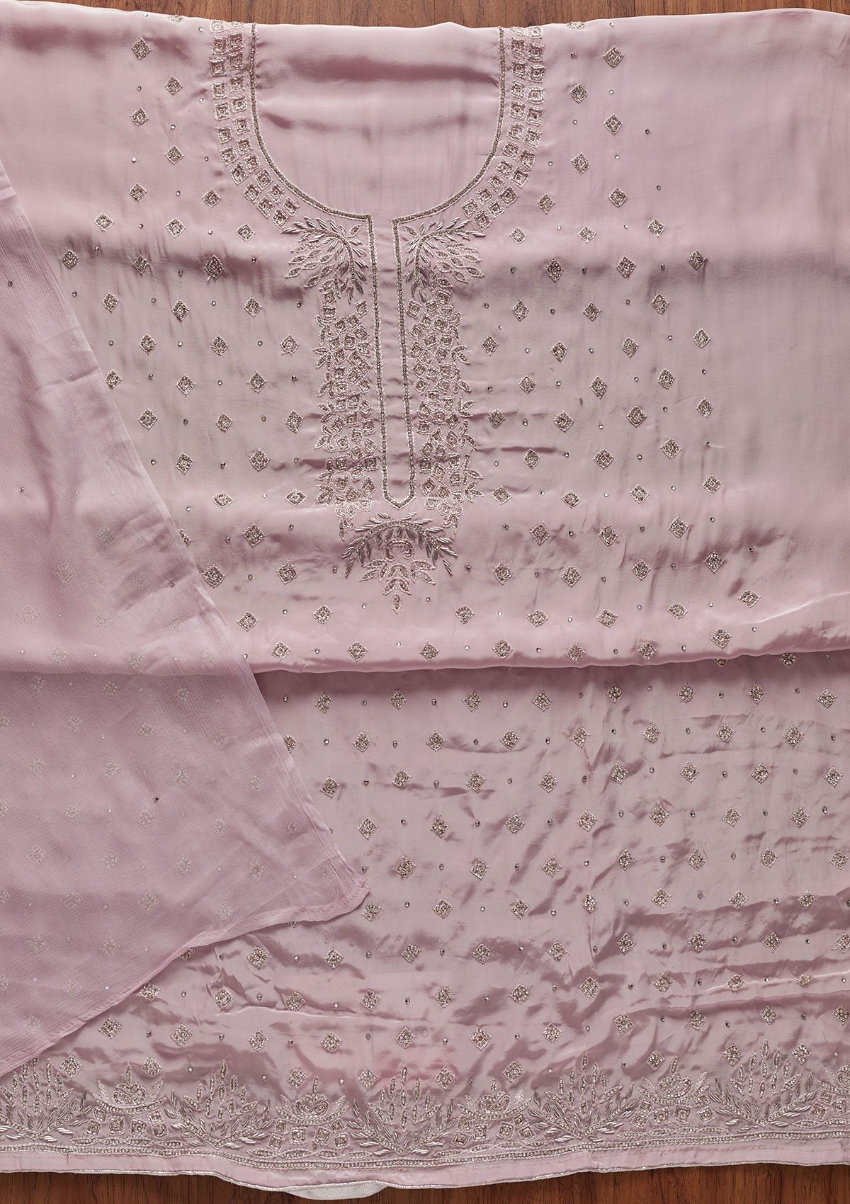 Mauve Salwar Suit In Semi Crepe Fabric. The Salwar Suit Is Embellished With Cutdana Embroidery. Accompanied with an unstitched bottom and dupatta. Comes With The Koskii Promise Of Premium Quality.