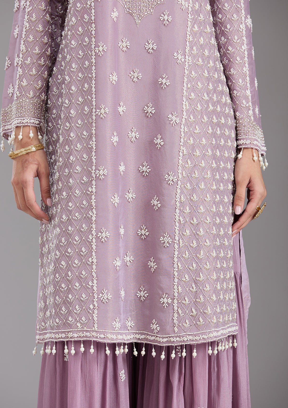 Mauve Salwar_RM in Tissue fabric. The Salwar_RM is embellished with Cutdana embroidery. Accompanied with a bottom and dupatta. Comes with the Koskii promise of premium quality.