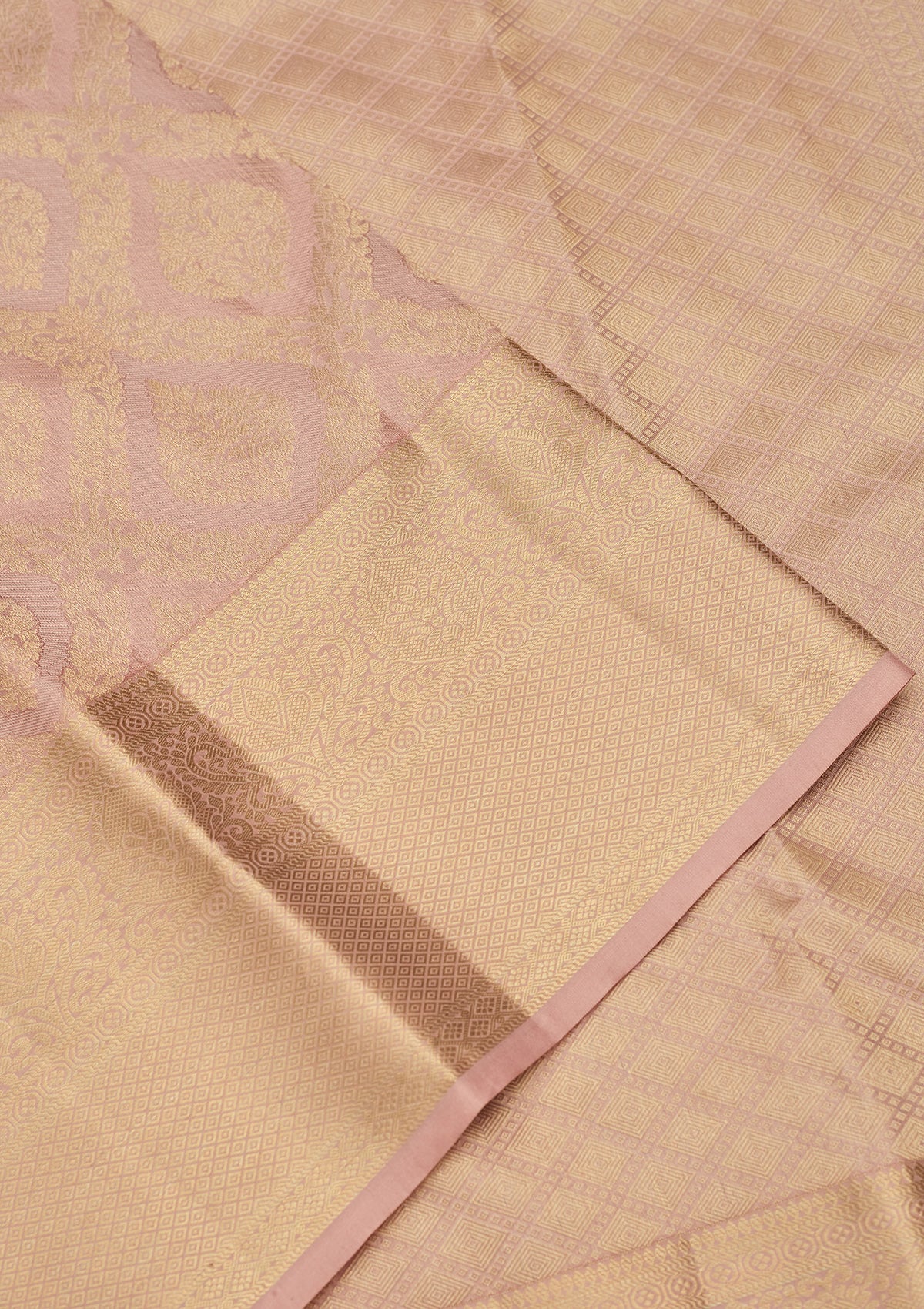 Mauve Silk_Saree in Silk fabric. The Silk_Saree is elevated with Zariwork (Gold) embroidery. It comes with an Unstitched blouse. Comes with the Koskii promise of premium quality.
