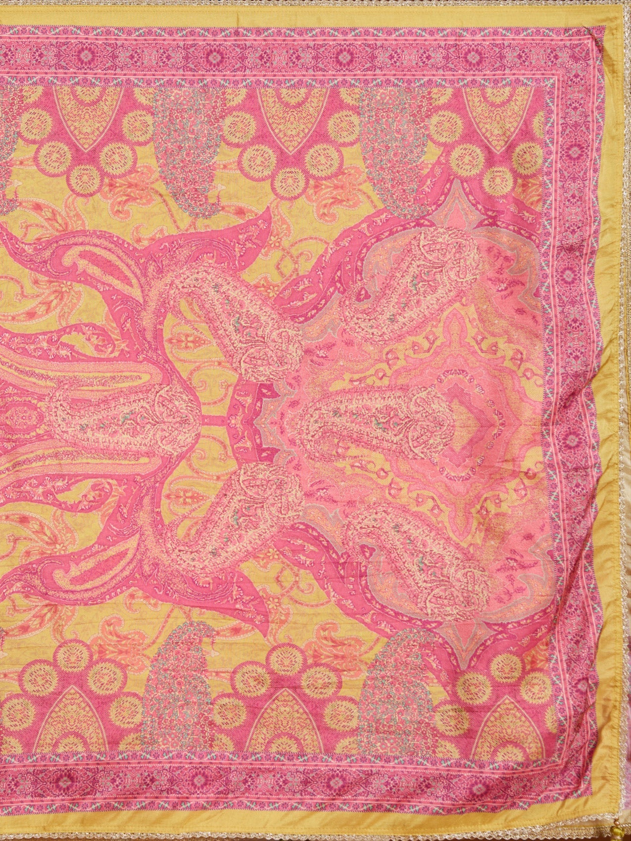 Mehandi Green Salwar Suit in Brocade fabric. The Salwar Suit is embellished with Zariwork (Gold) embroidery. Accompanied with a bottom and dupatta. Comes with the Koskii promise of premium quality.