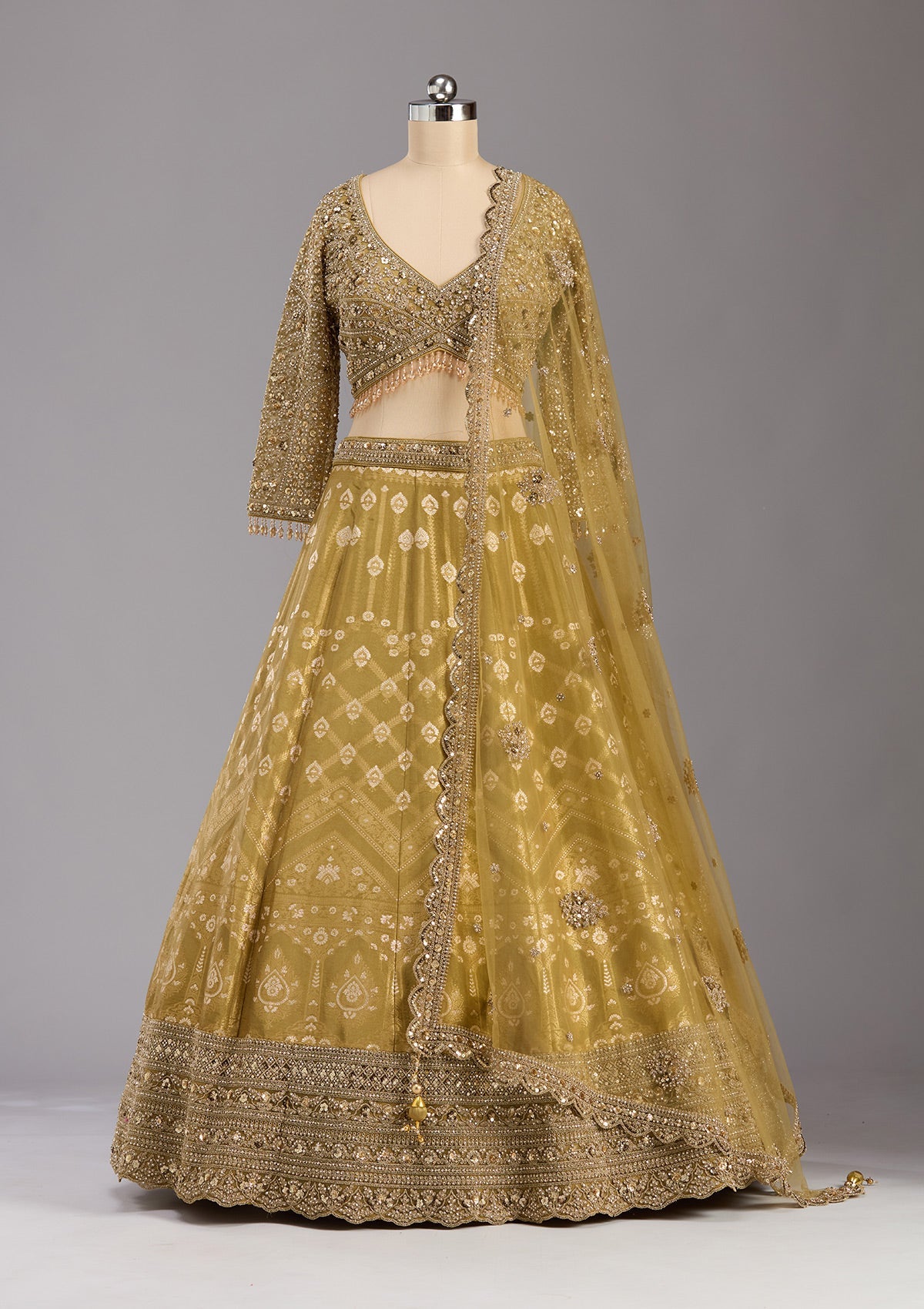 Mehendi Cording Banarasi Readymade Lehenga