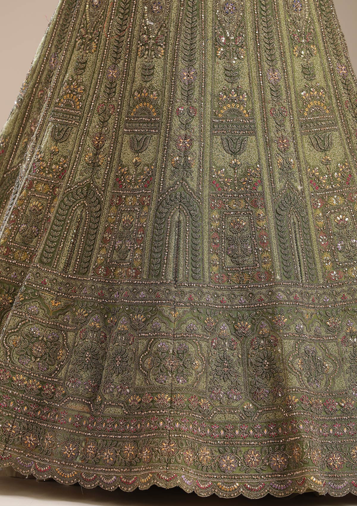 Mehendi Semi-Stitched Lehenga in Net fabric. The Lehenga is embellished with Cording embroidery. Accompanied with an Semi-Stitched blouse and dupatta. Comes with the Koskii promise of premium quality.