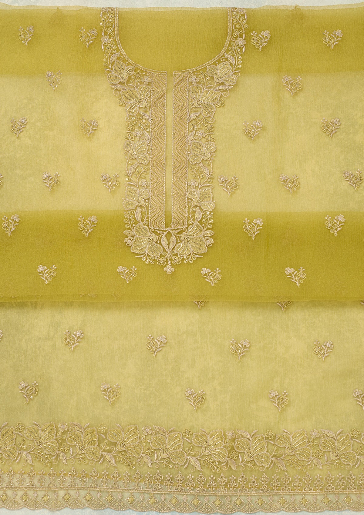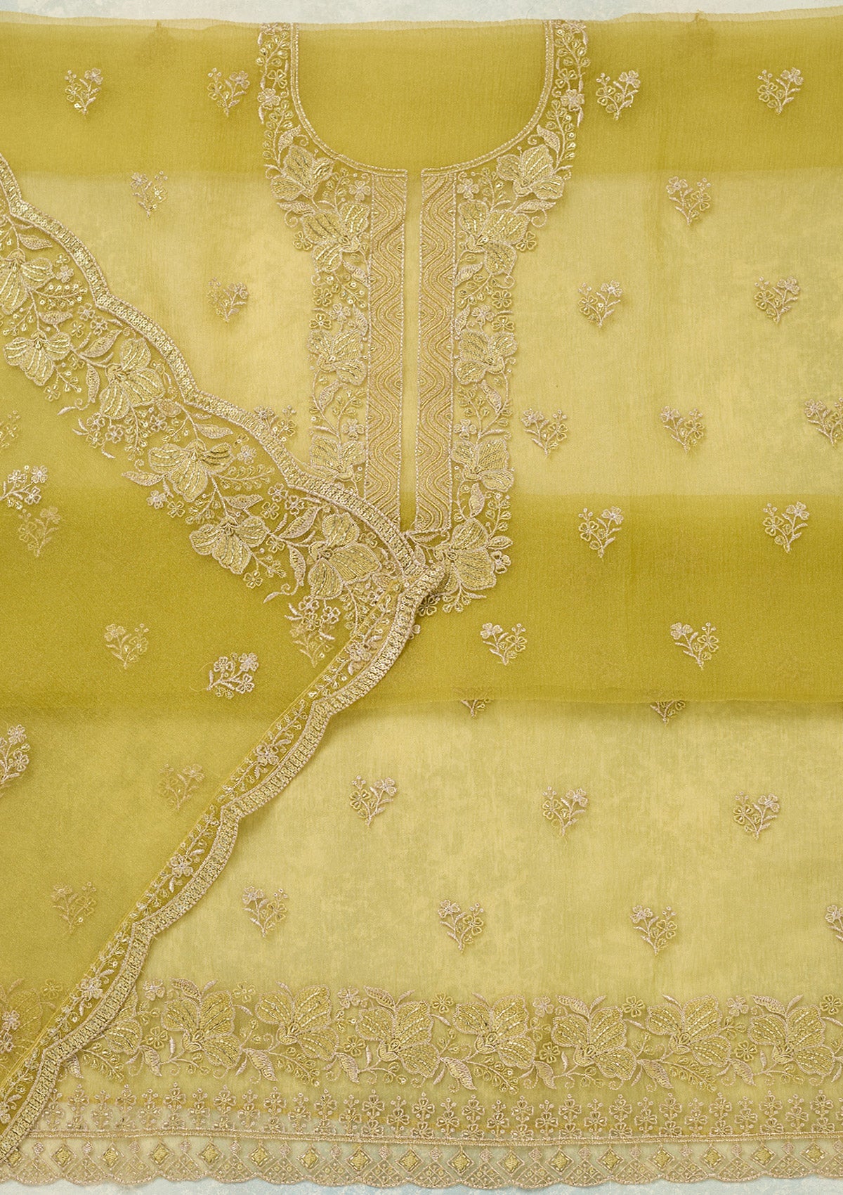 Mehendi Threadwork Tissue Unstitched Salwar Suit