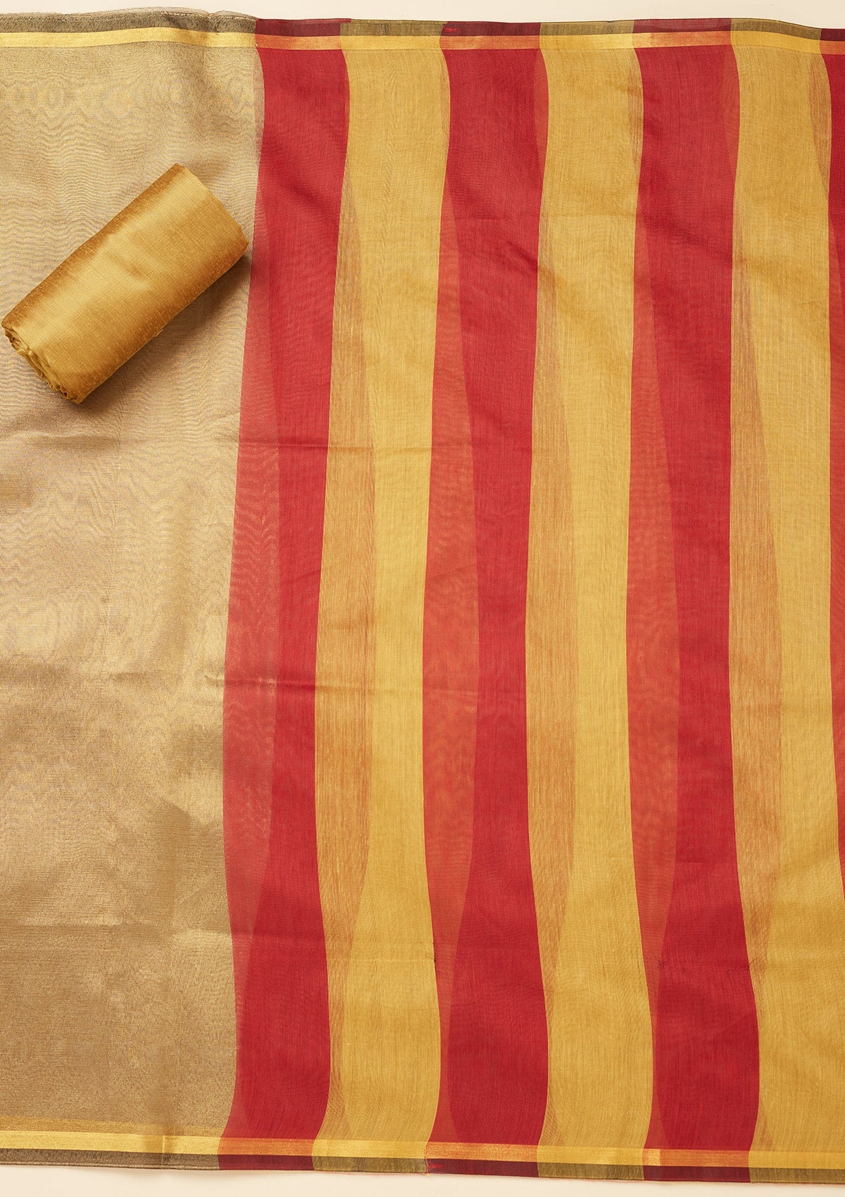 Mehendi Zariwork (Gold) Tissue Unstitched Salwar Suit