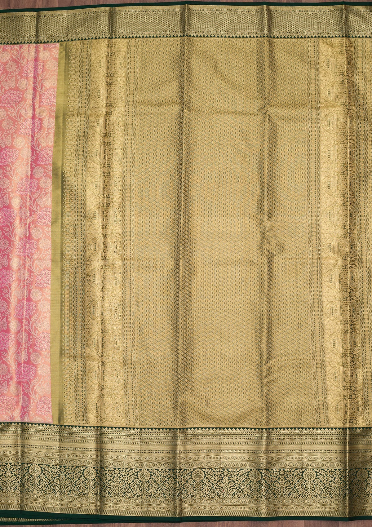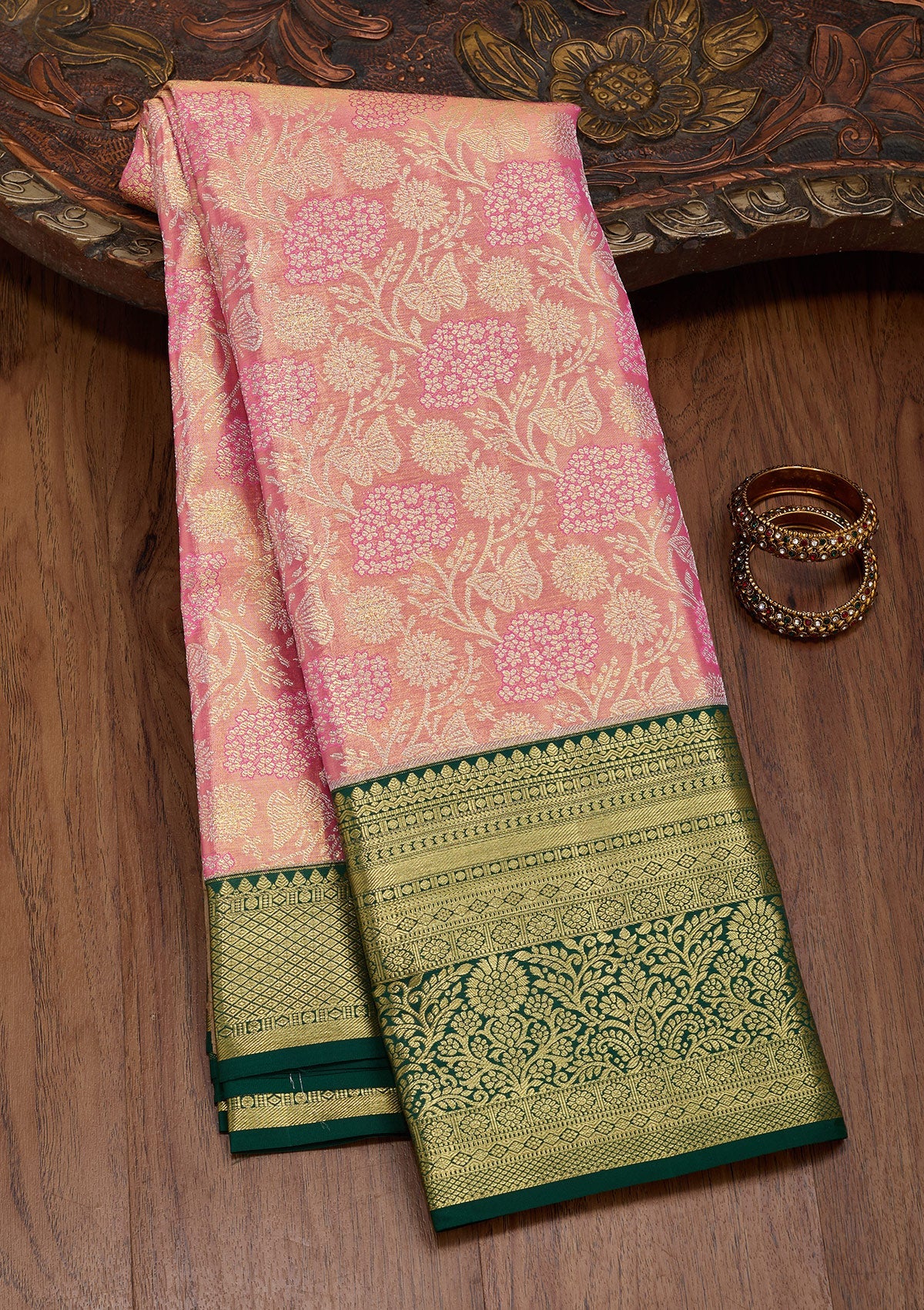 Mehendi Silk Saree in Tissue fabric. The Silk Saree is elevated with Zariwork embroidery. It comes with an Unstitched blouse. Comes with the Koskii promise of premium quality.