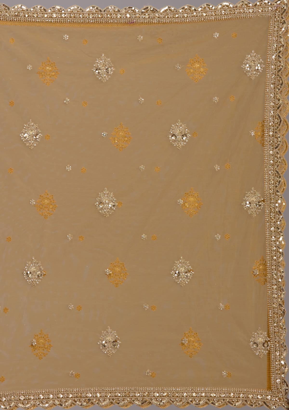 Mustard Readymade Lehenga in Banarasi fabric. The Lehenga is embellished with Cording embroidery. Accompanied with an Readymade blouse and dupatta. Comes with the Koskii promise of premium quality.