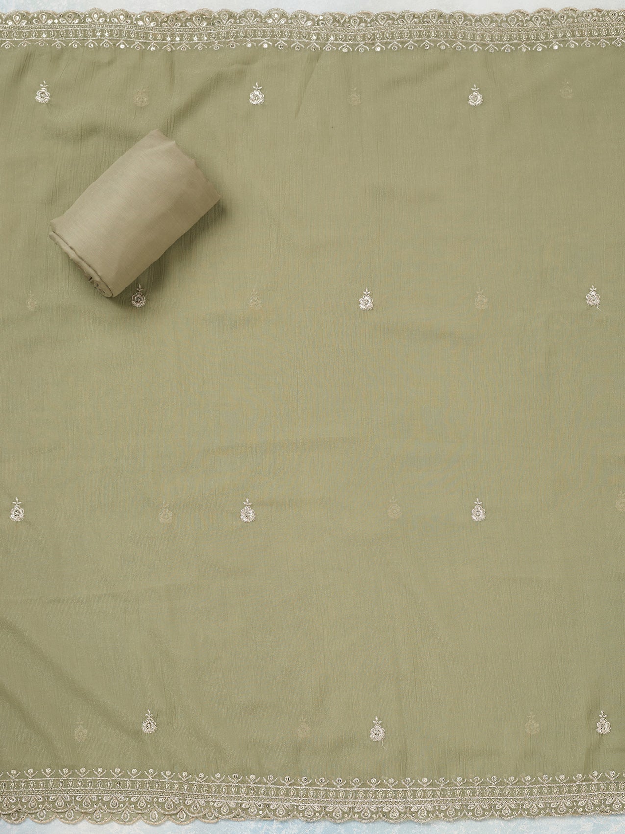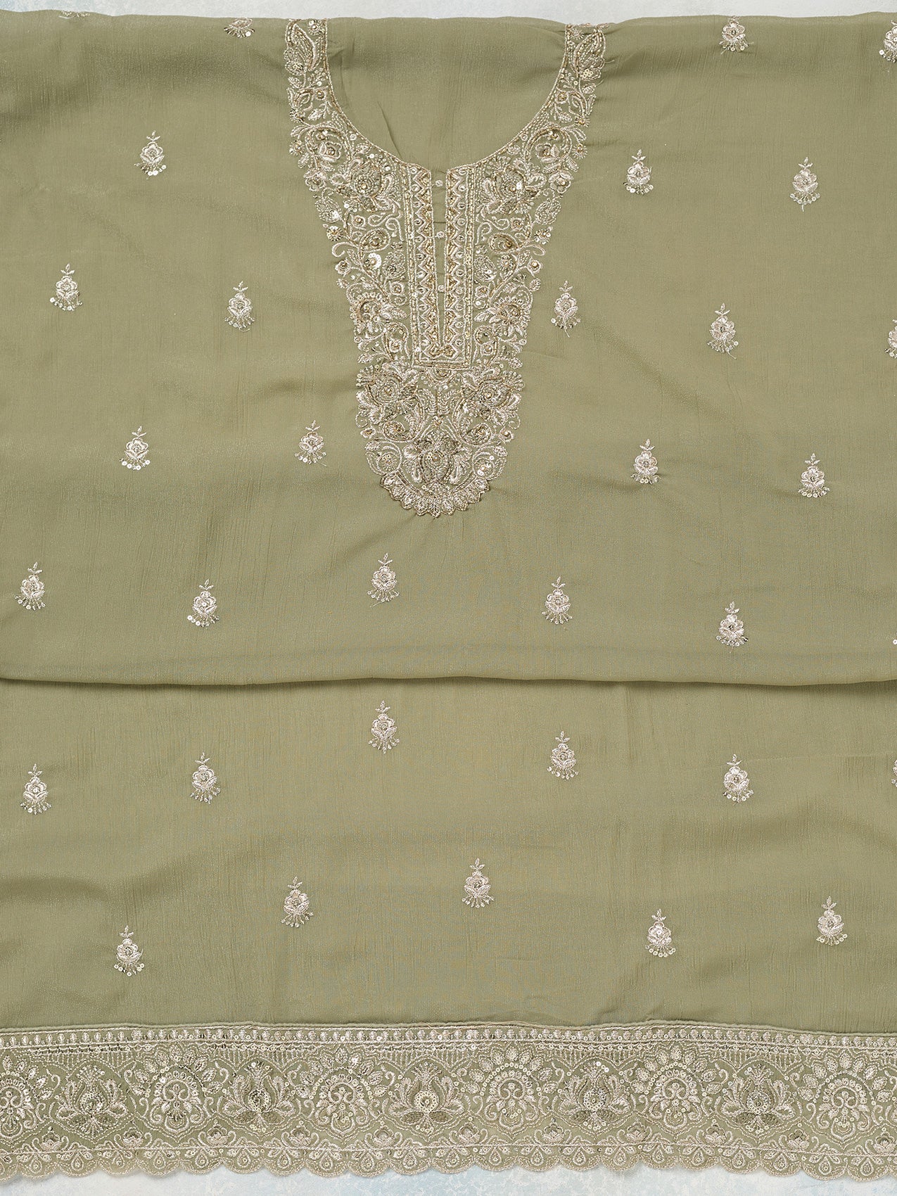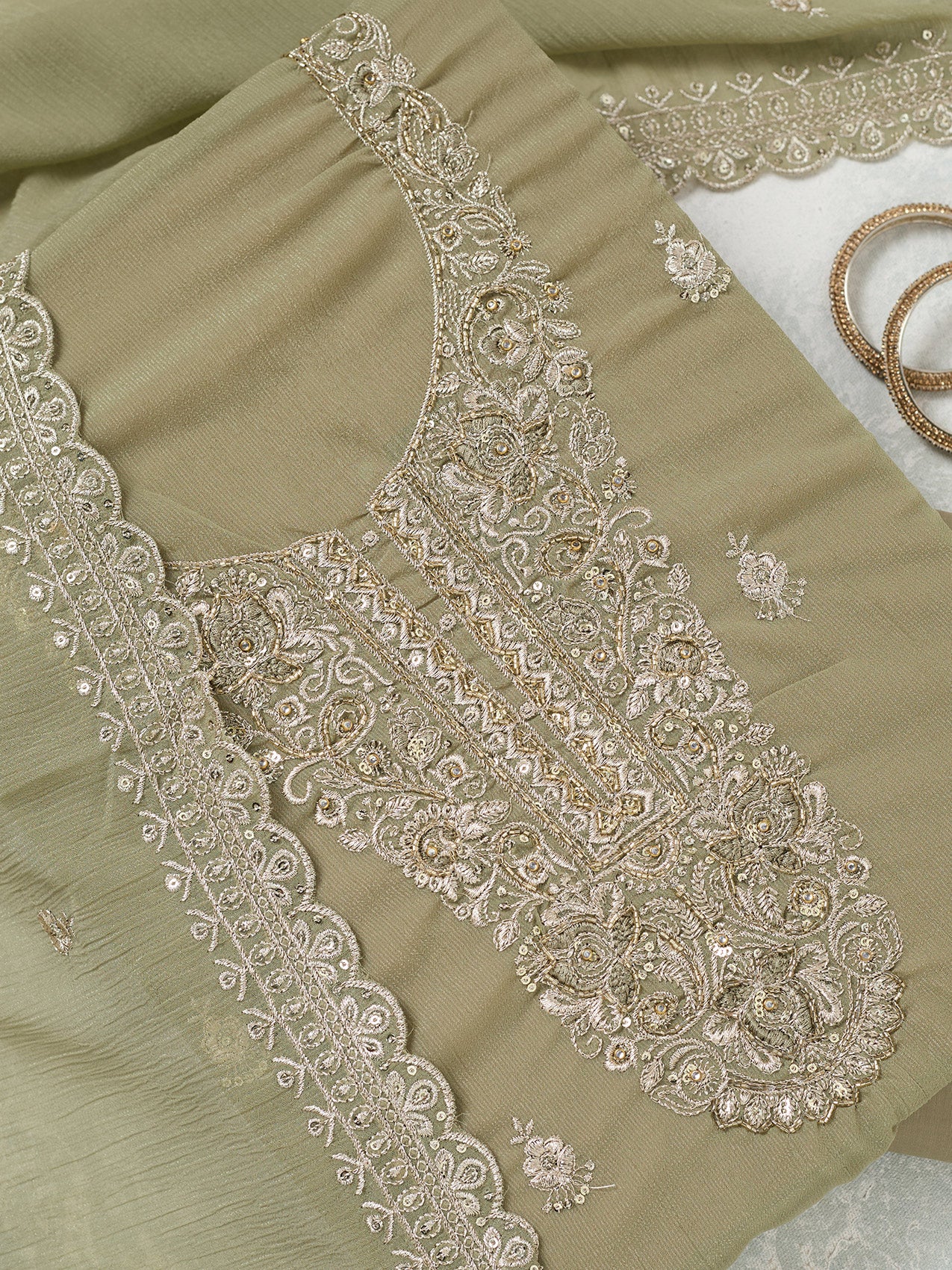 Pista Green Zariwork (Gold) Chinon Unstitched Salwar Suit