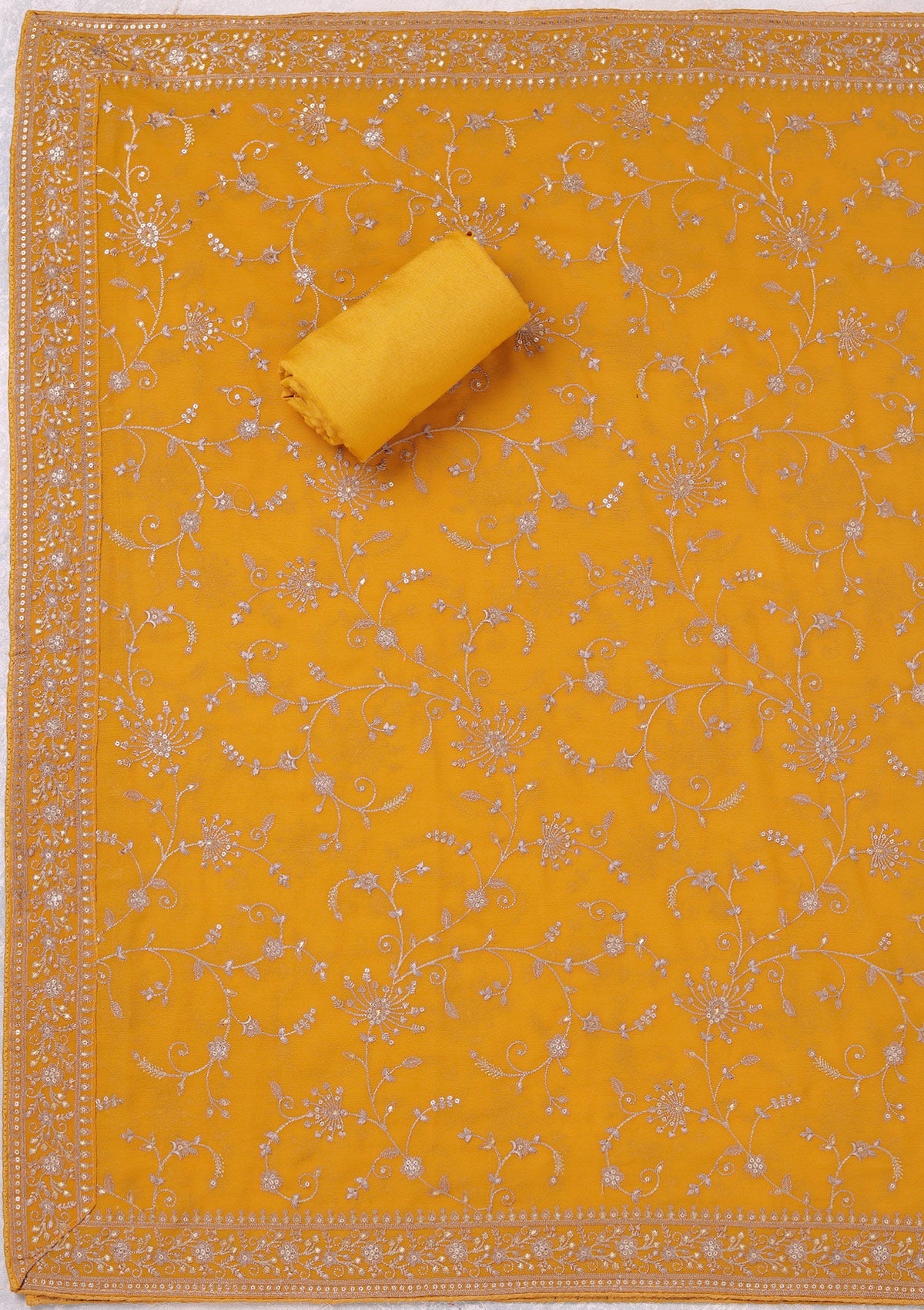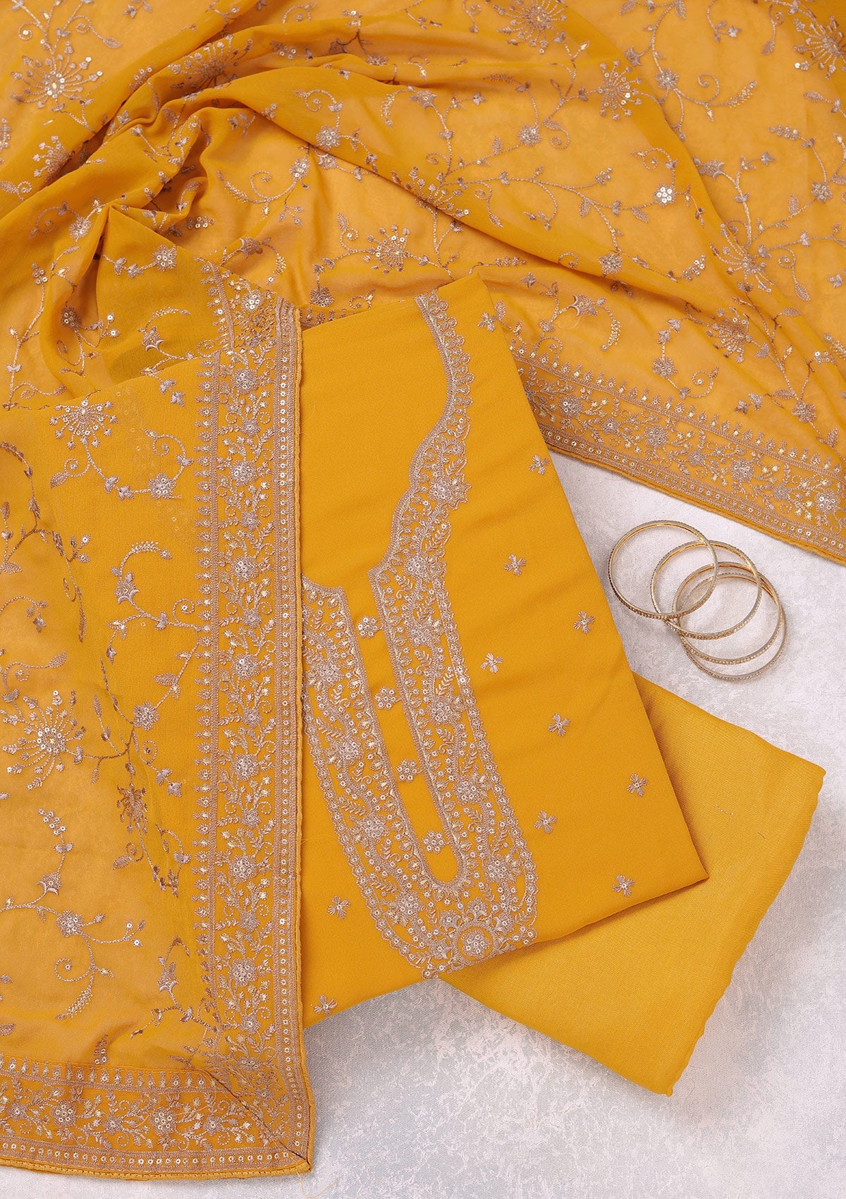 Mustard Threadwork Georgette Unstitched Salwar Suit