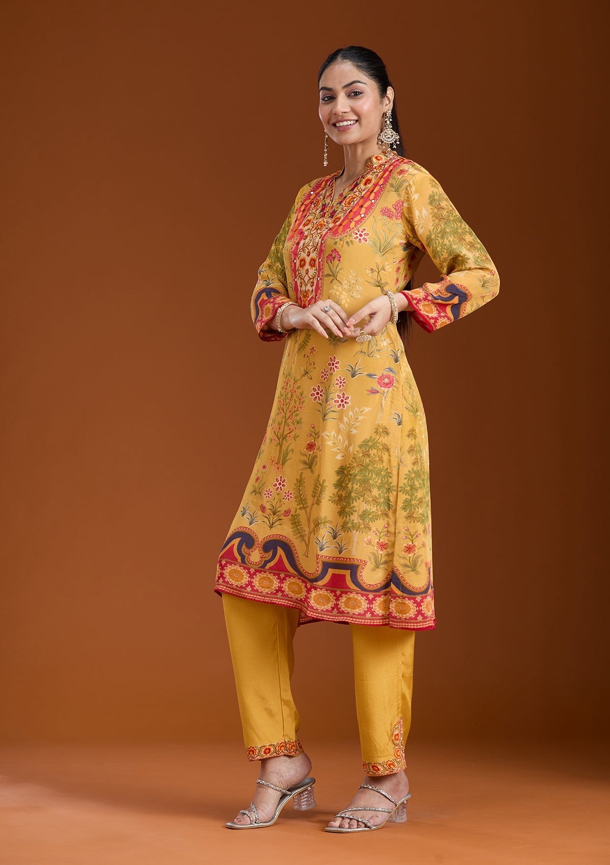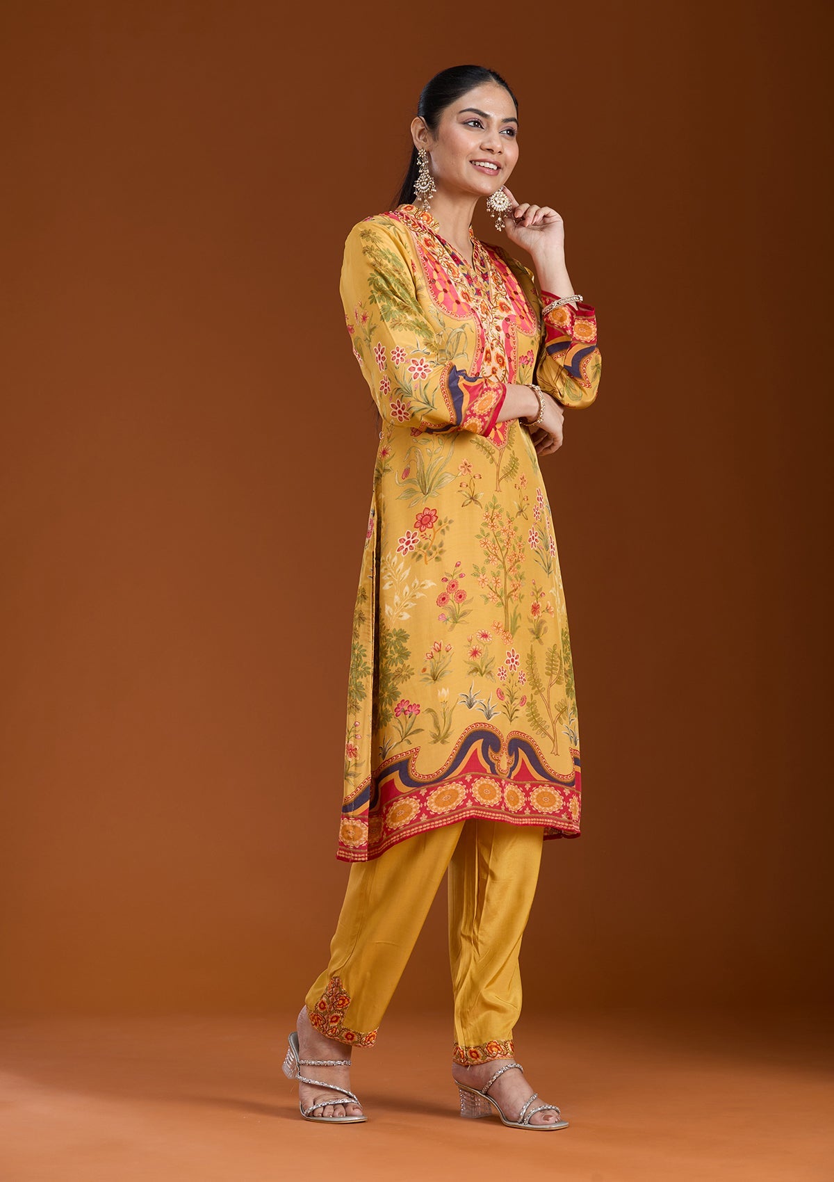 Mustard Yellow Printed Crepe Readymade Salwar Suit