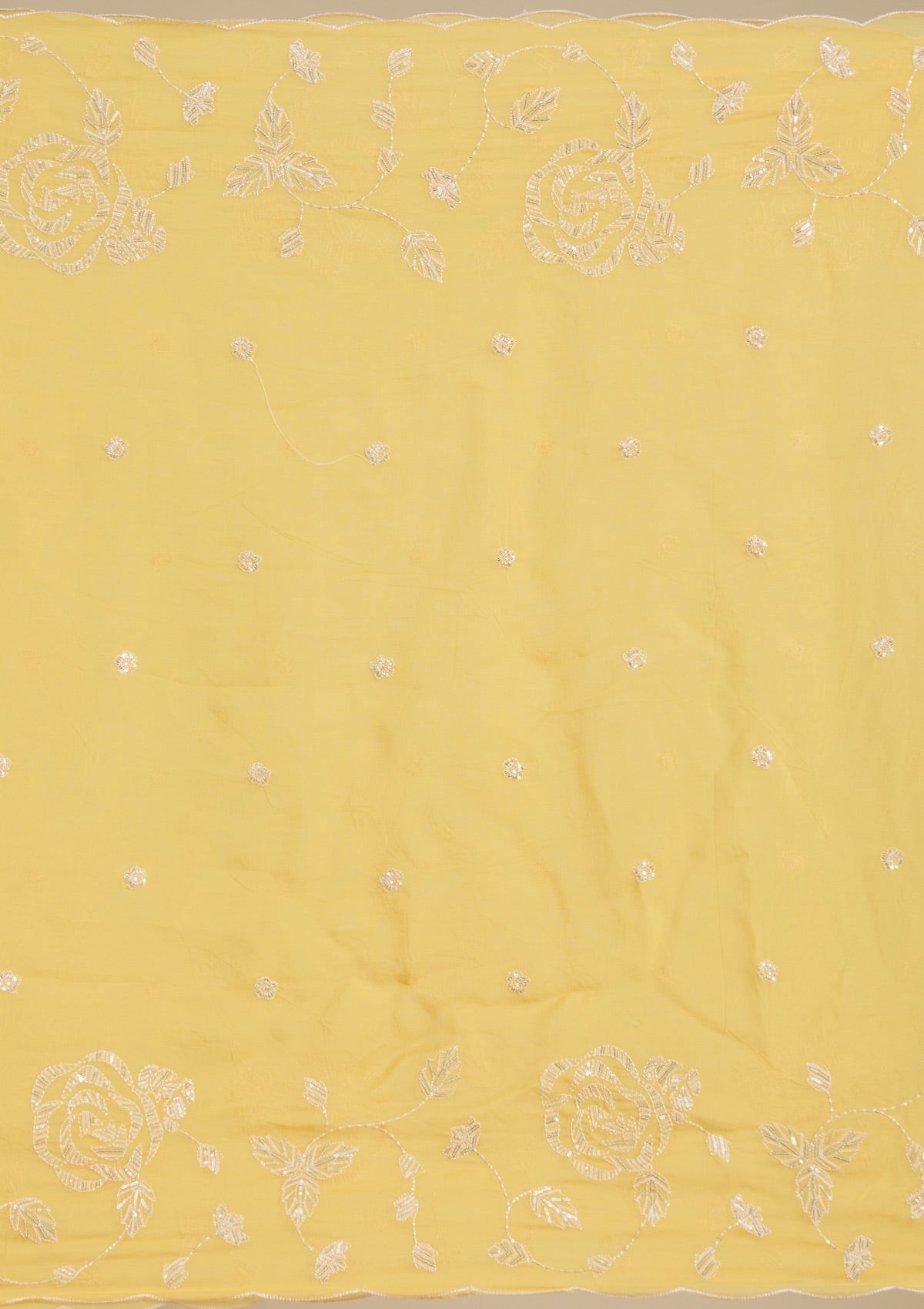 Mustard Yellow Salwar Suit in Organza fabric. The Salwar Suit is embellished with Zardozi (Gold) embroidery. Accompanied with a bottom and dupatta. Comes with the Koskii promise of premium quality.