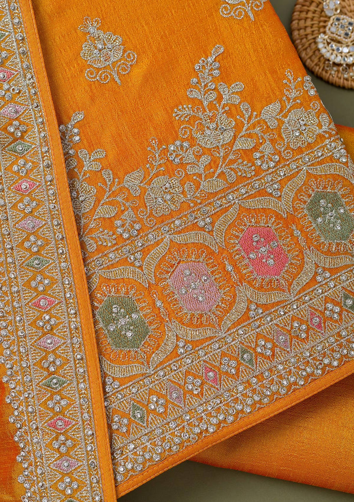 Mustard Zariwork Art Silk Unstitched Salwar Suit
