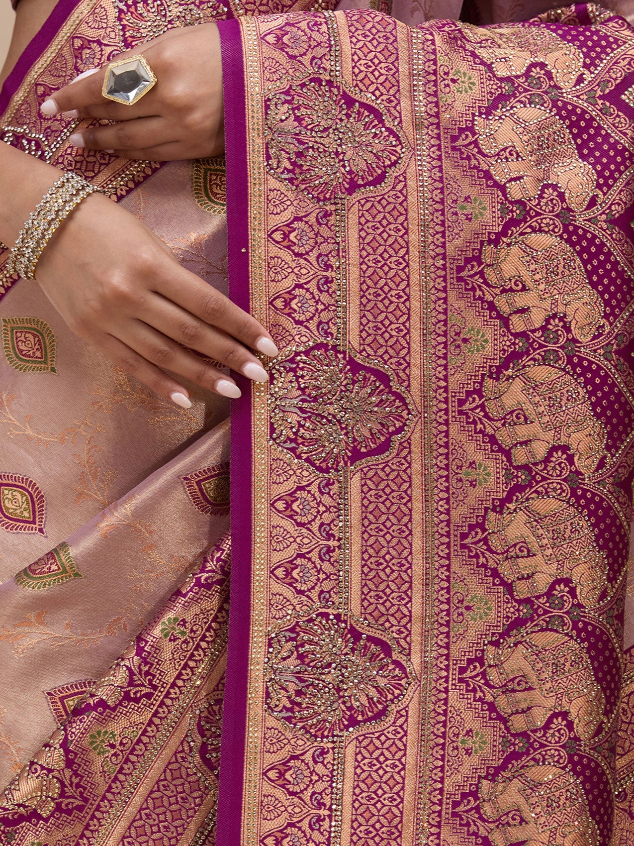 Lavender Silk_Saree in Art Silk fabric. The Silk_Saree is elevated with Aariwork embroidery. It comes with an Unstitched blouse. Comes with the Koskii promise of premium quality.