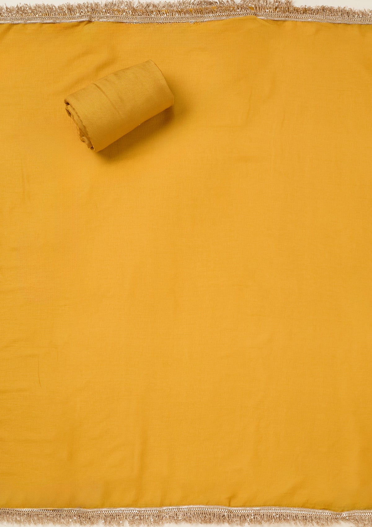 Mustard Zariwork Dola Silk Unstitched Salwar Suit-koskii