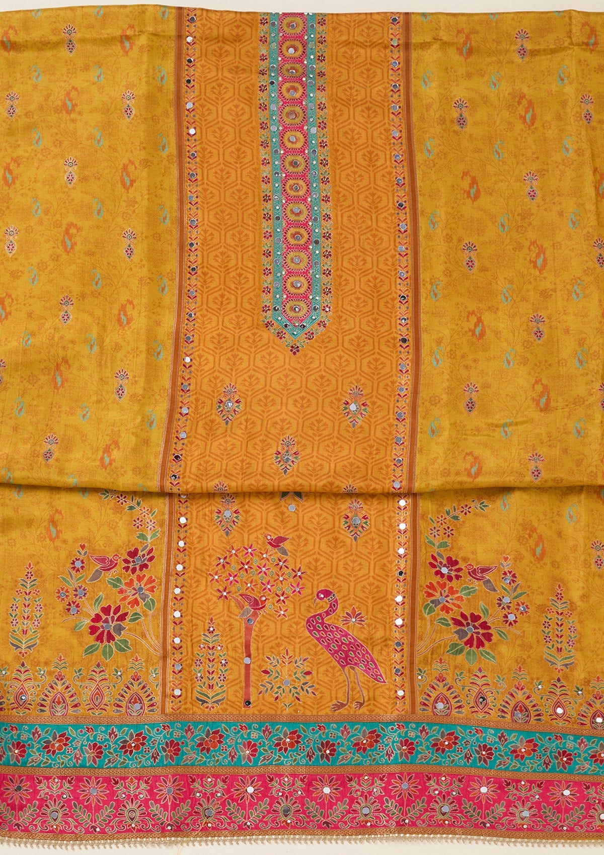 Mustard Zariwork Dola Silk Unstitched Salwar Suit