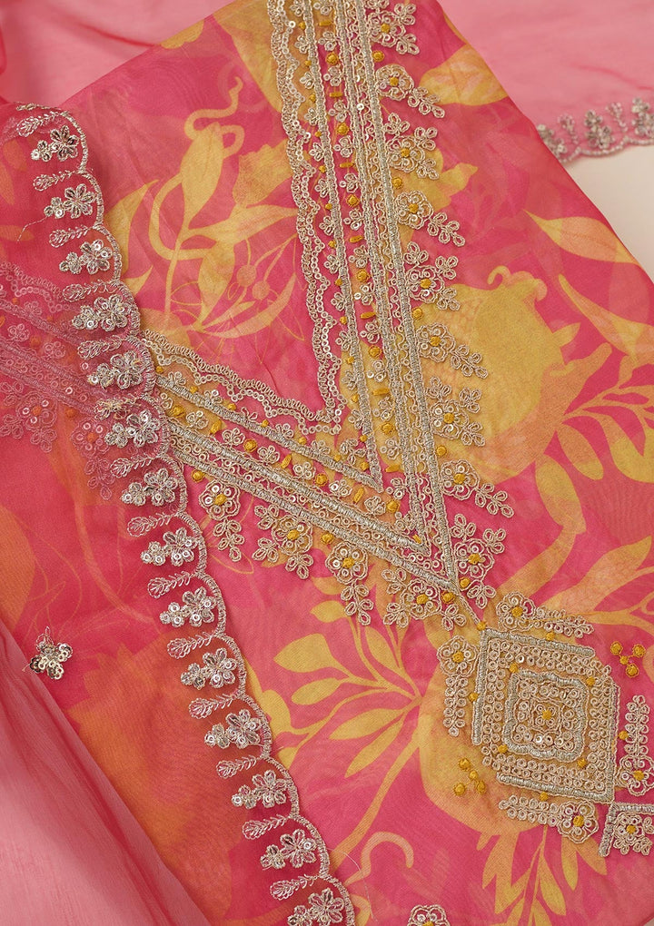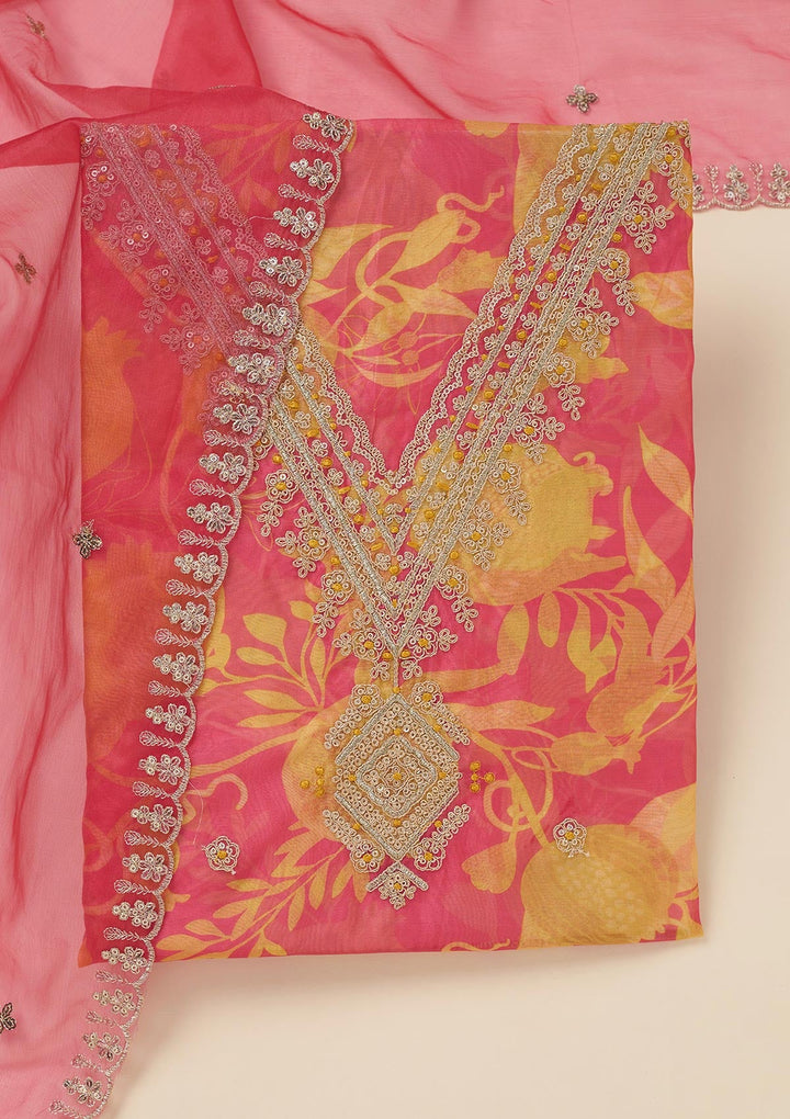 Mustard Zariwork (Gold) Organza Unstitched Salwar Suit