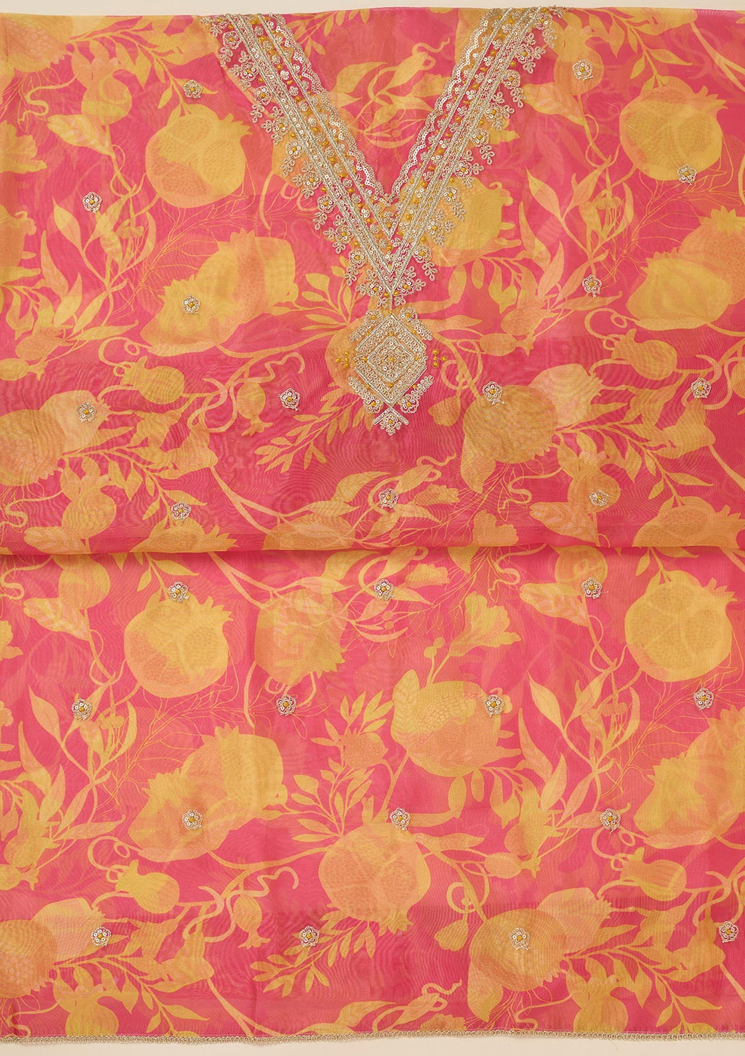 Mustard Salwar Suit in Organza fabric. The Salwar Suit is embellished with Zariwork (Gold) embroidery. Accompanied with a bottom and dupatta. Comes with the Koskii promise of premium quality.