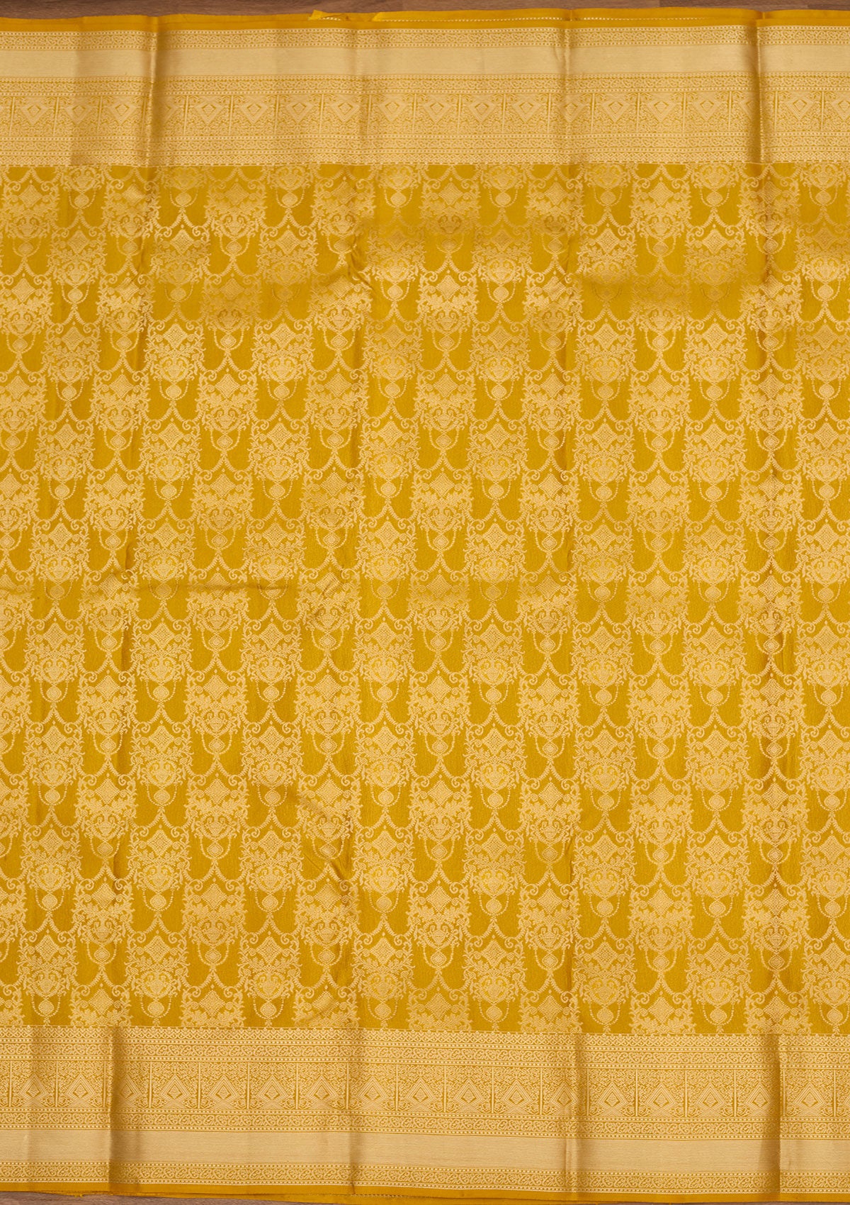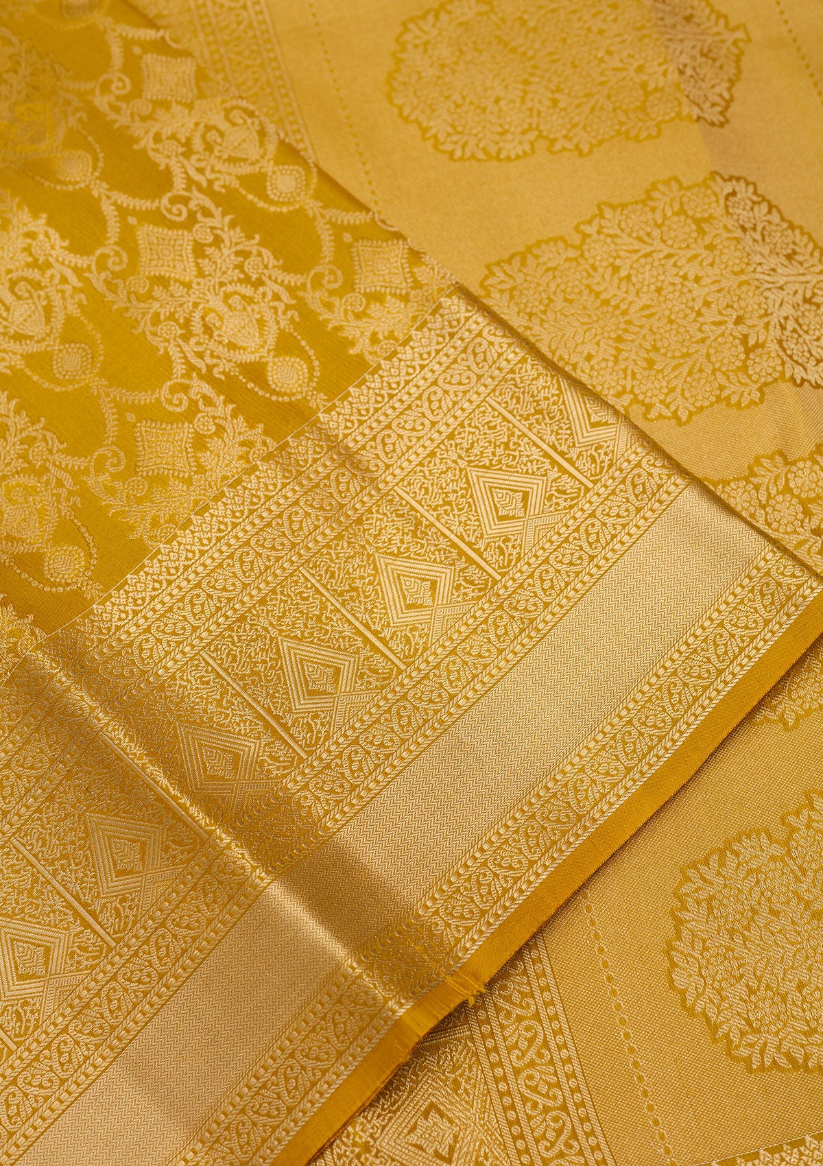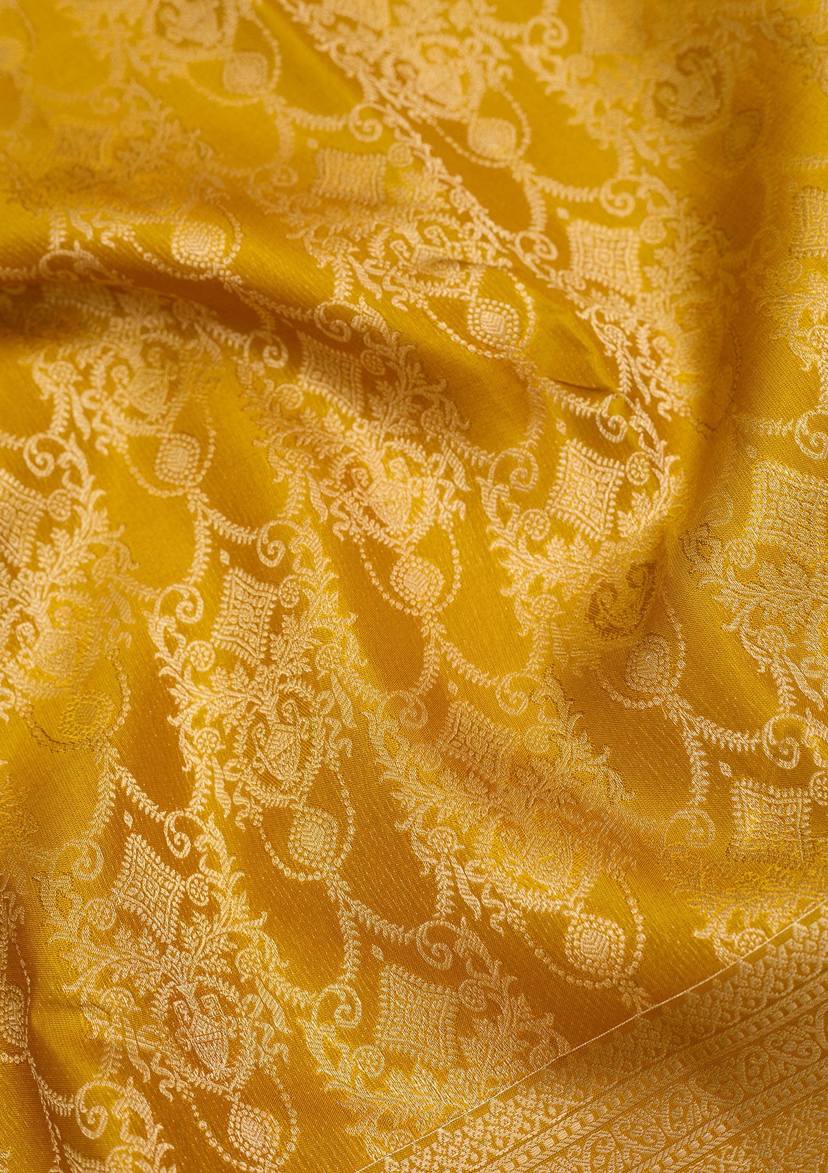 Mustard Silk_Saree in Silk fabric. The Silk_Saree is elevated with Zariwork (Gold) embroidery. It comes with an Unstitched blouse. Comes with the Koskii promise of premium quality.