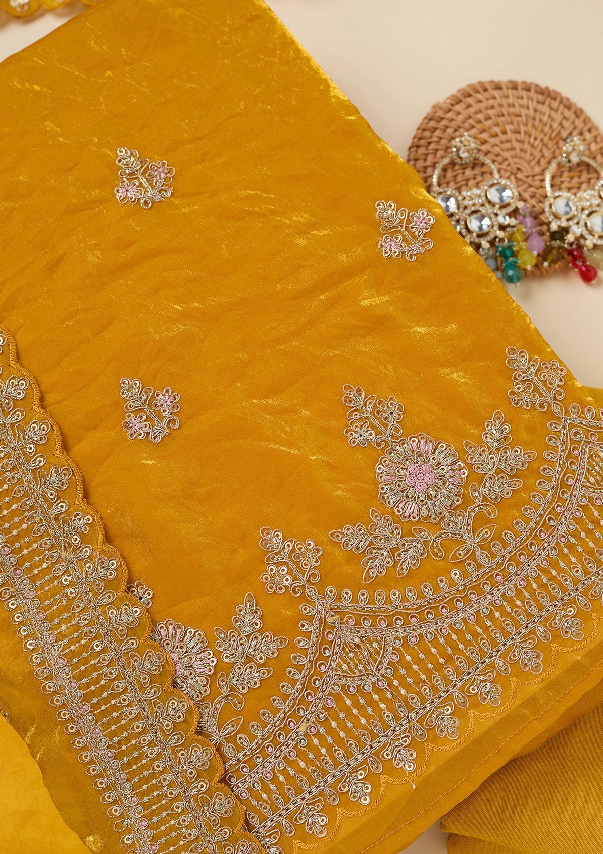 Mustard Zariwork (Gold) Soft Raw Silk Unstitched Salwar Suit