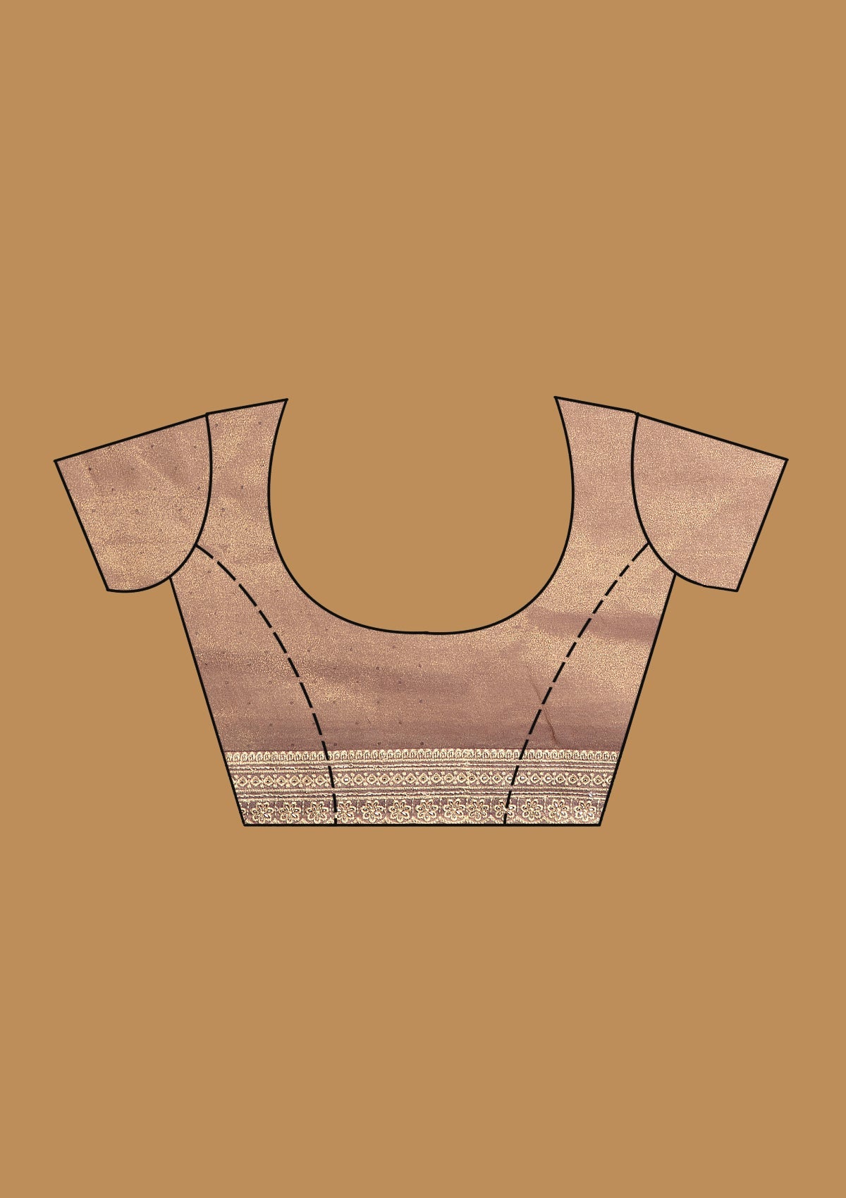 Lavender Saree in Tissue fabric. The Saree is elevated with Zariwork (Gold) embroidery. It comes with an Unstitched blouse. Comes with the Koskii promise of premium quality.