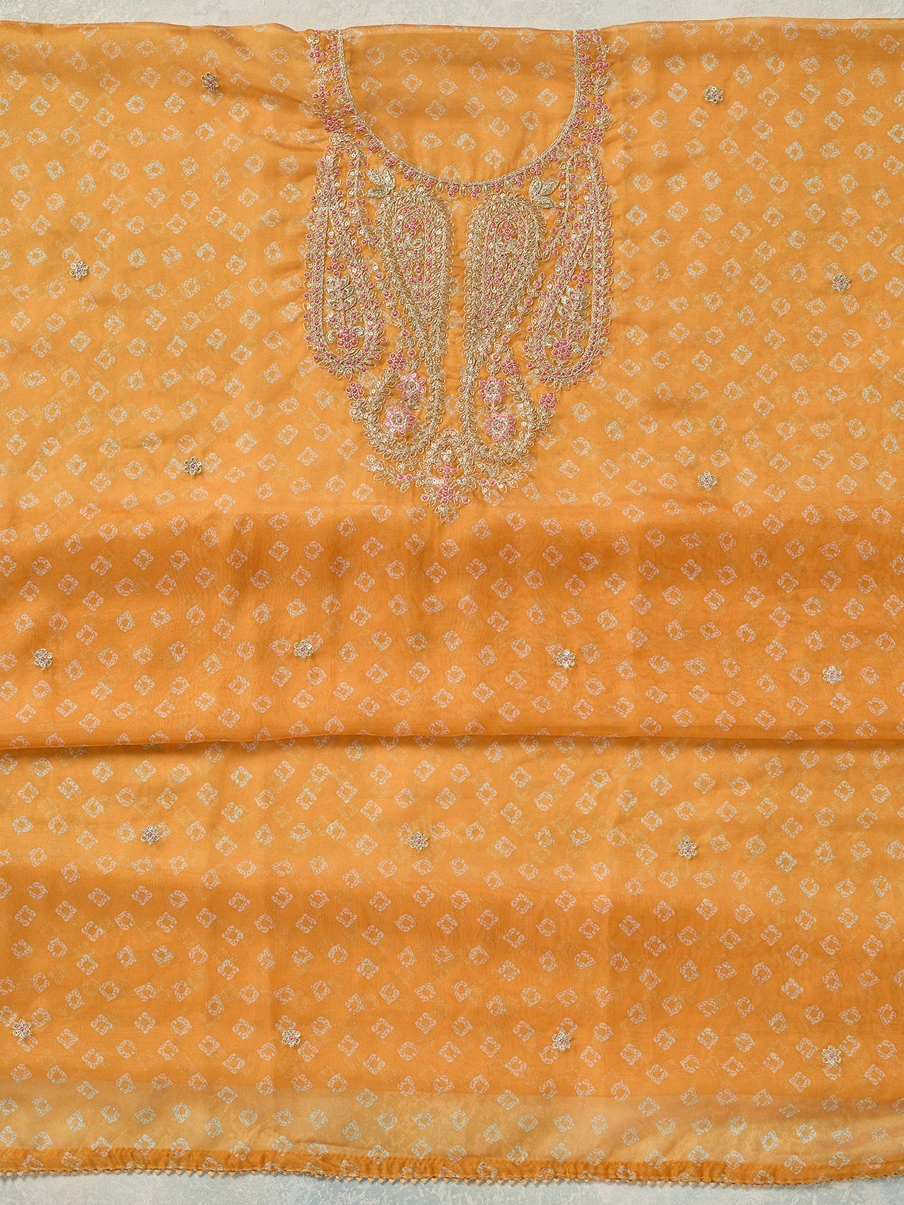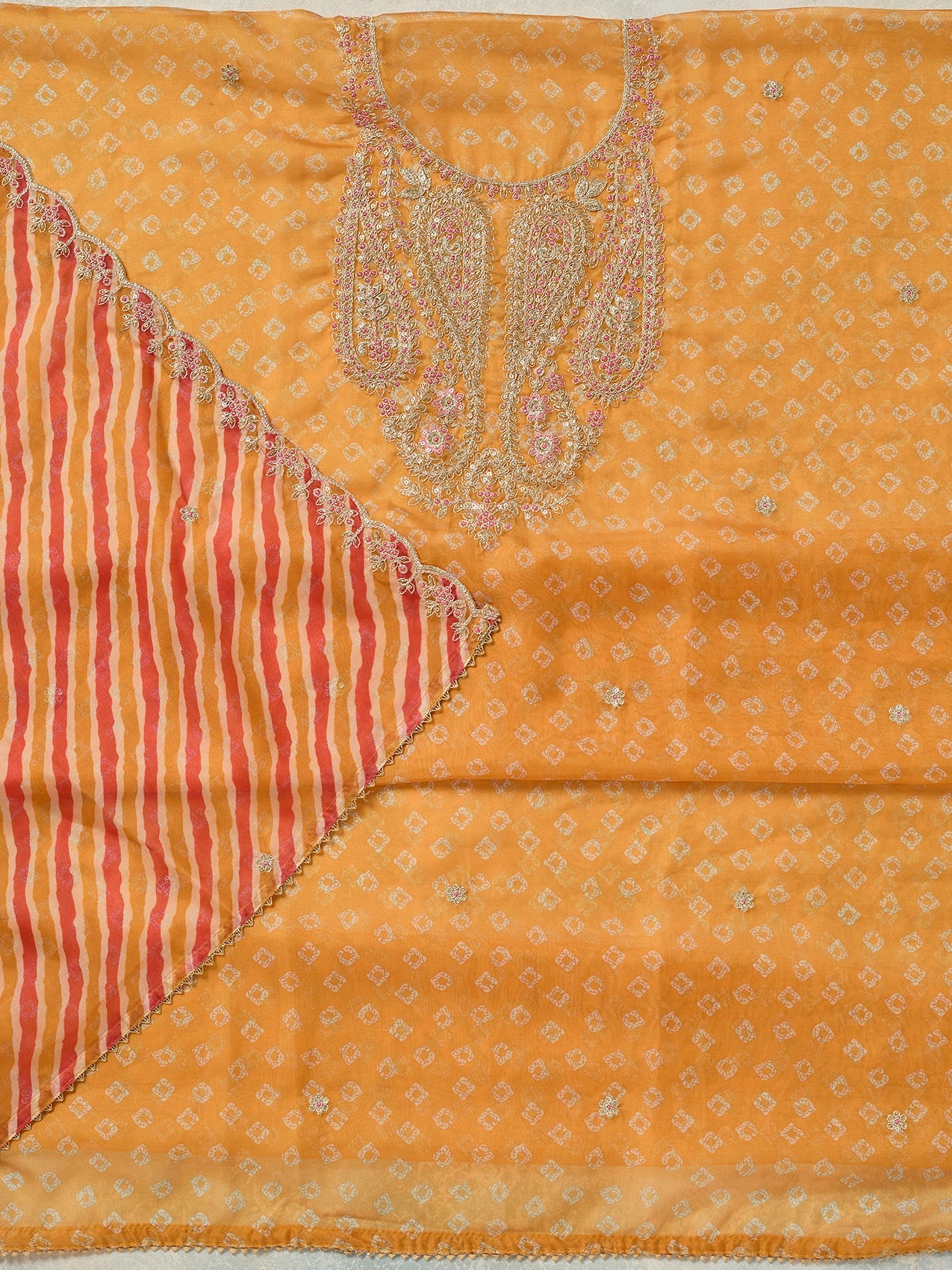 Mustard Zariwork Organza Unstitched Salwar Suit