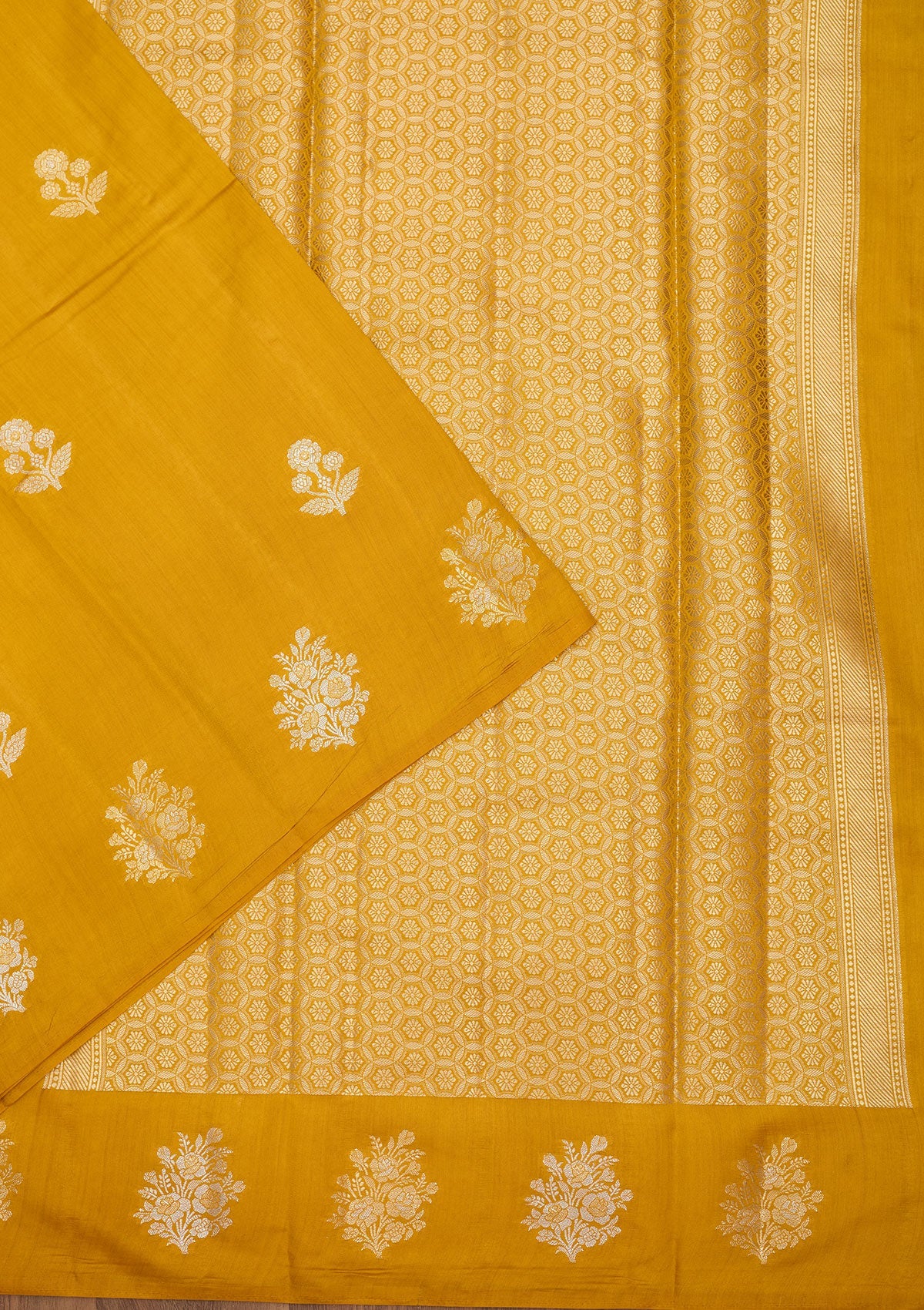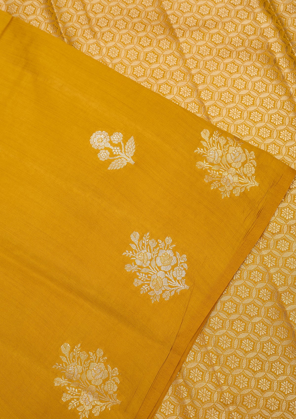 Mustard Silk_Saree in Pure Silk fabric. The Silk_Saree is elevated with Zariwork embroidery. It comes with an Unstitched blouse. Comes with the Koskii promise of premium quality.