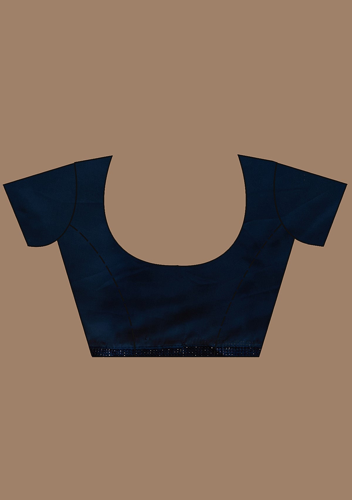 Navy Blue Saree in Organza fabric. The Saree is elevated with Stonework (Silver) embroidery. It comes with an Unstitched blouse. Comes with the Koskii promise of premium quality.
