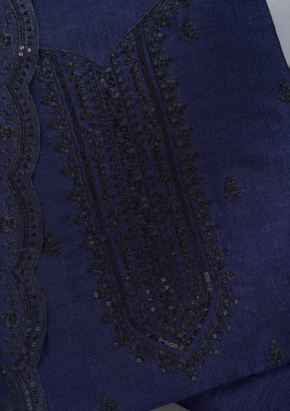 Navy Blue Threadwork Tissue Unstitched Salwar Suit