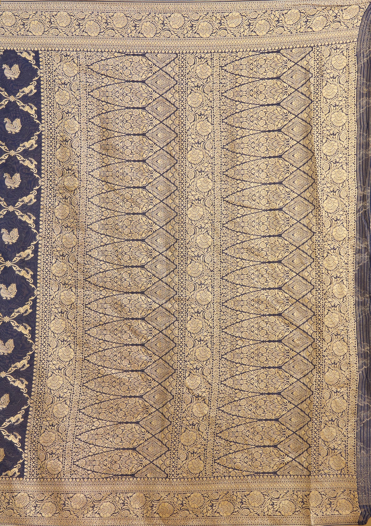 Navy Blue Zariwork Satin Silk Saree