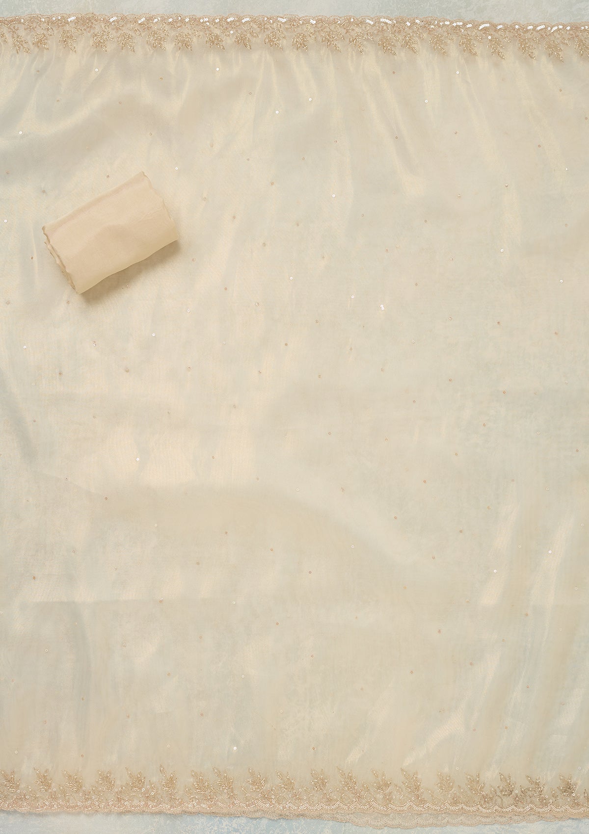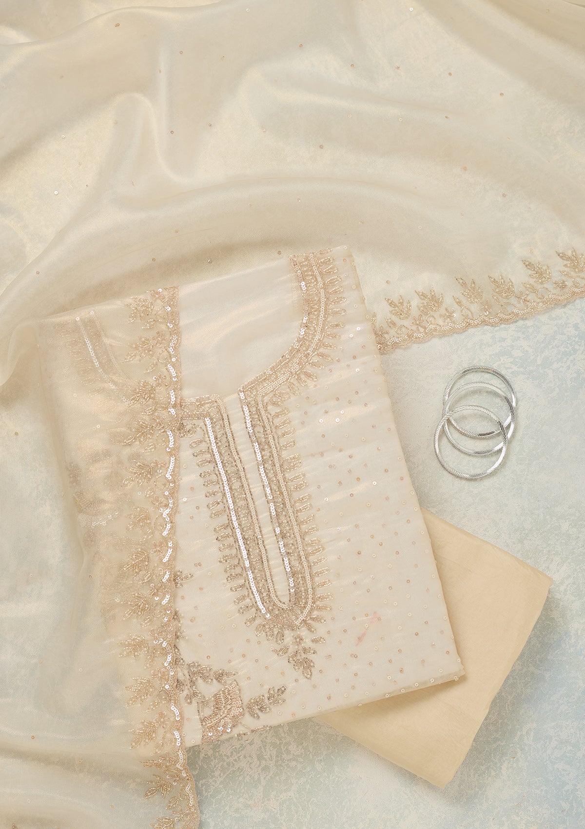 Off White Cutdana Tissue Unstitched Salwar Suit