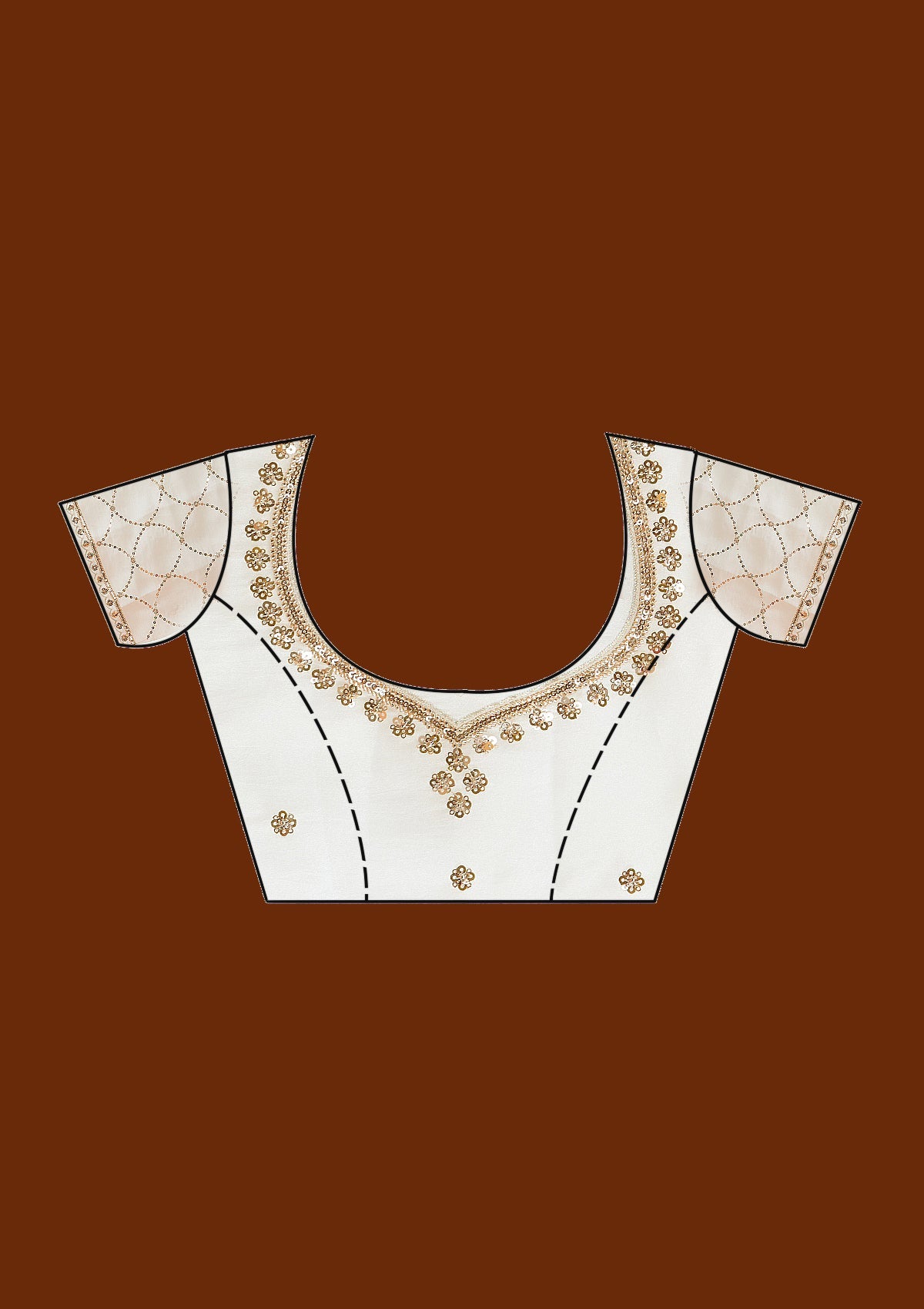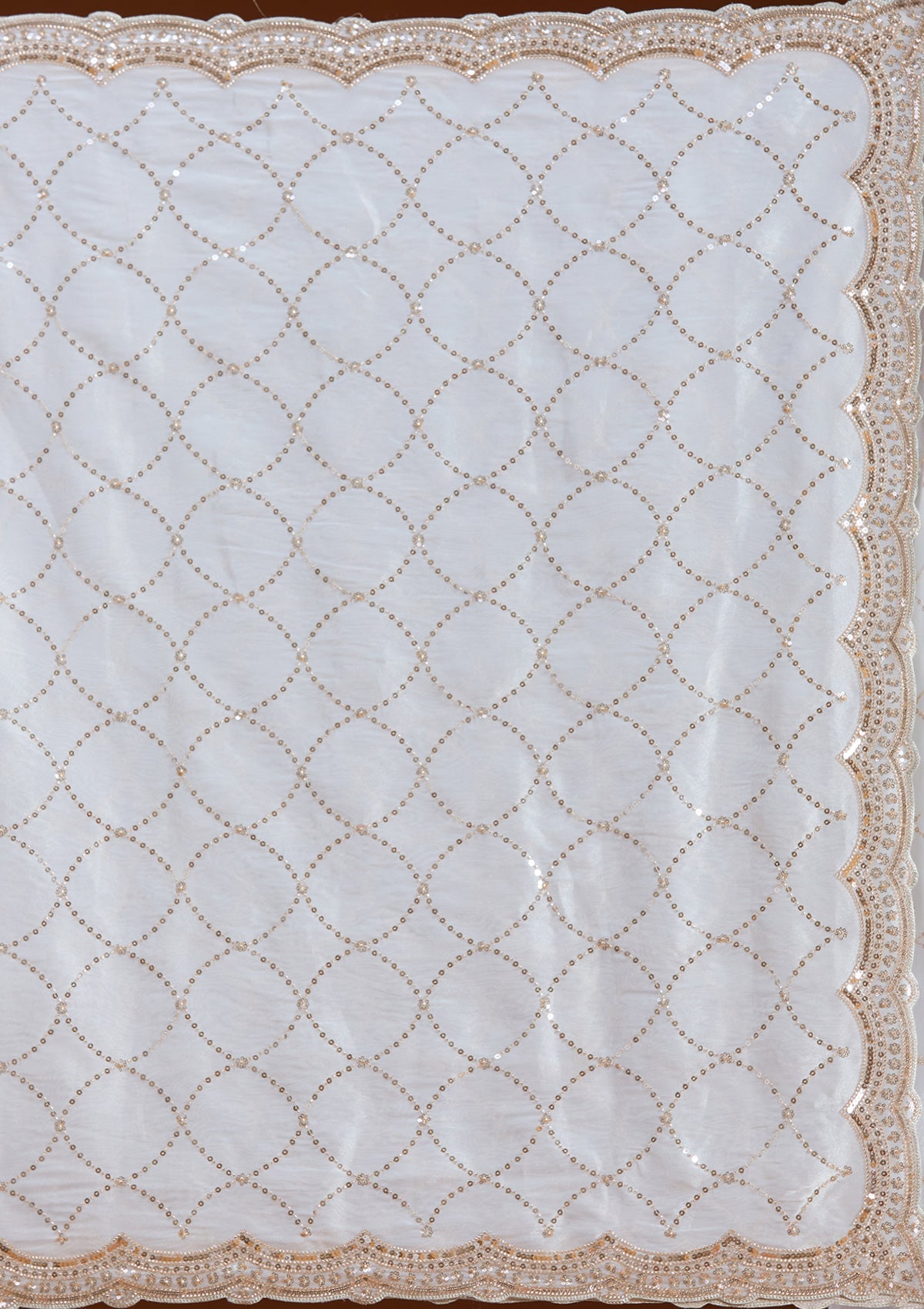 Off White Saree in Tissue fabric. The Saree is elevated with Sequins embroidery. It comes with an Unstitched blouse. Comes with the Koskii promise of premium quality.
