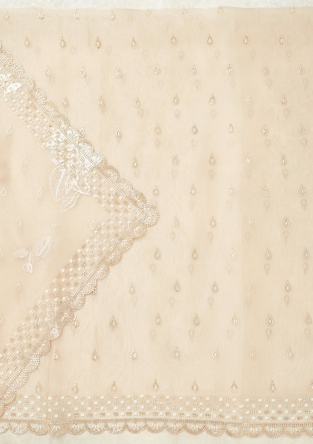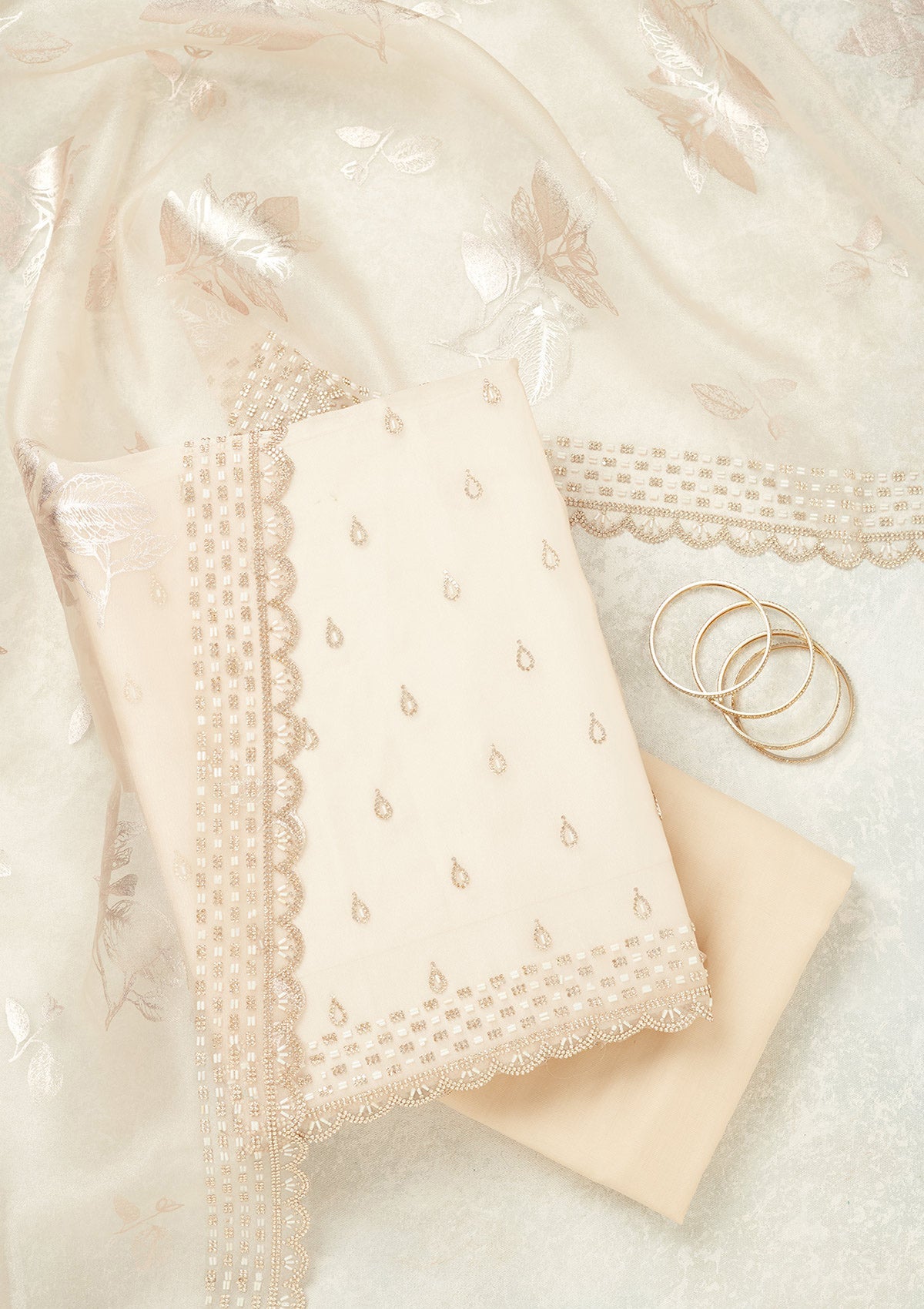 Off White Stonework (Gold) Tissue Unstitched Salwar Suit