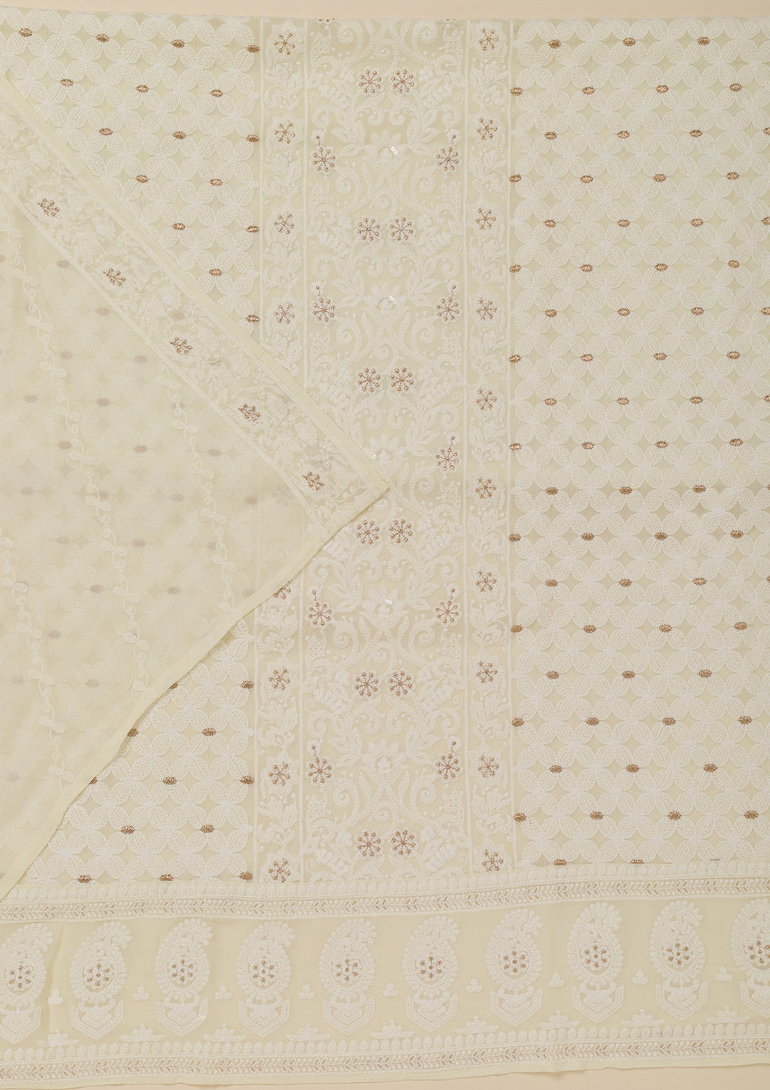 Off White Threadwork Georgette Unstitched Salwar Suit