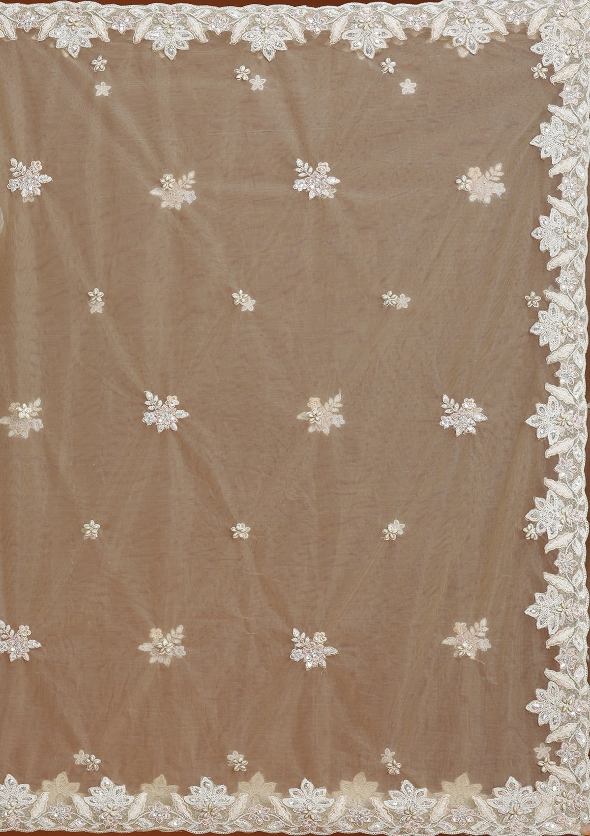 Off White Semi-Stitched Lehenga in Net fabric. The Lehenga is embellished with Threadwork embroidery. Accompanied with an Semi-Stitched blouse and dupatta. Comes with the Koskii promise of premium quality.