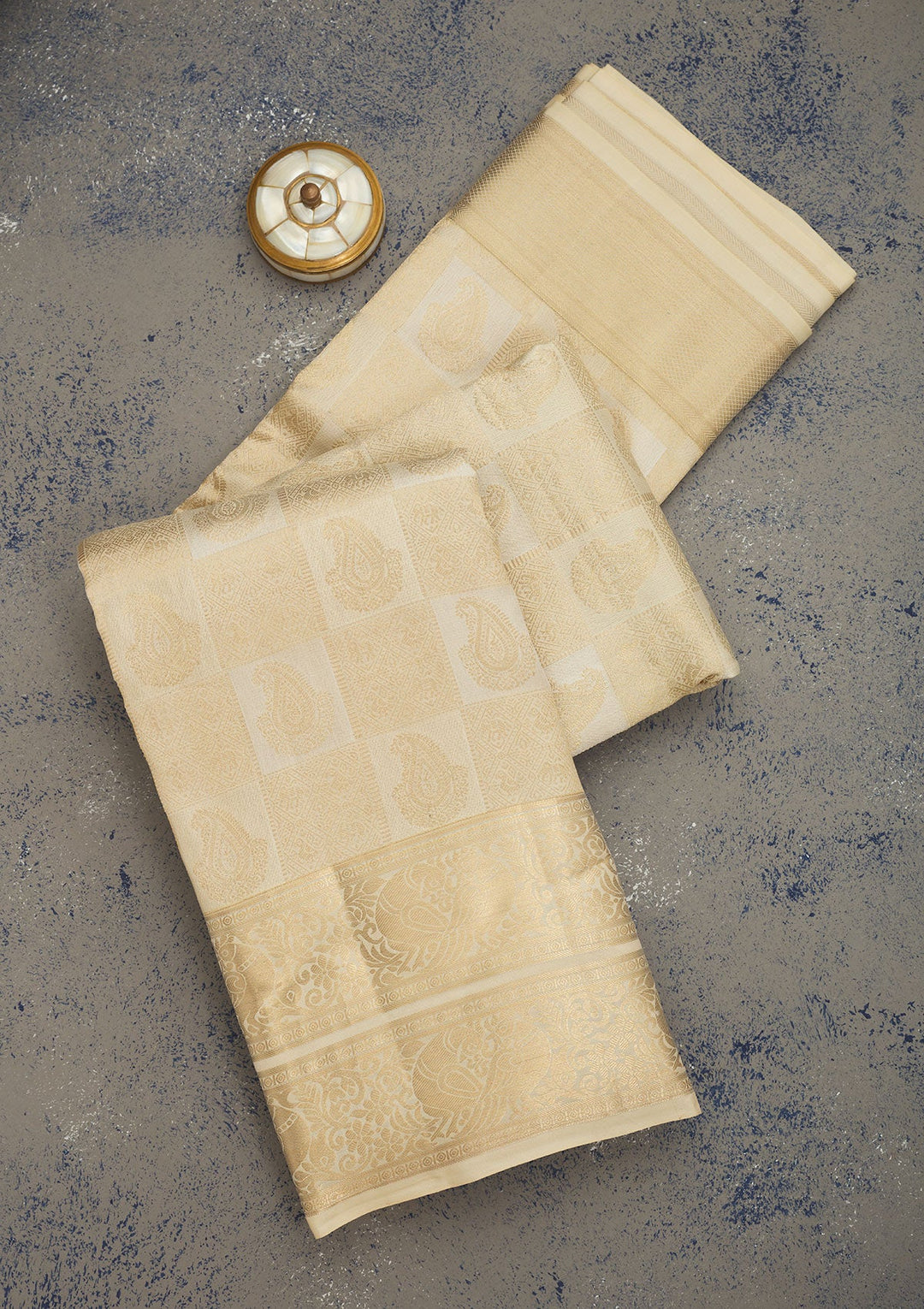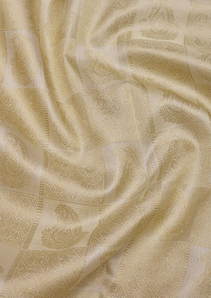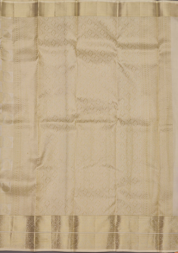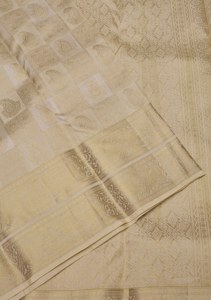 Off White Zariwork Pure Silk Saree-Koskii