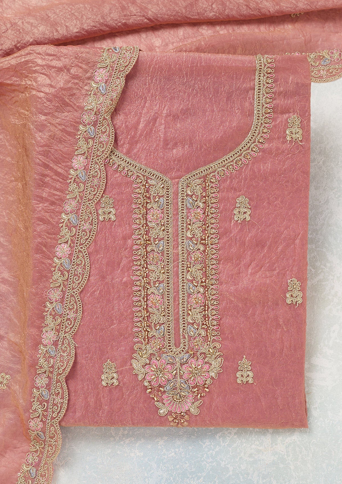 Onion Pink Aariwork Tissue Unstitched Salwar Suit