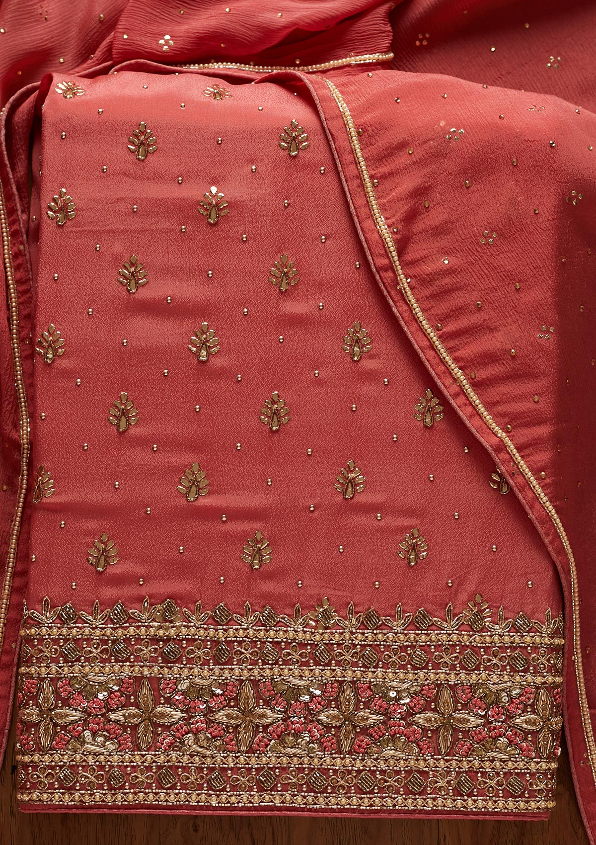 Onion Pink Badla Semi Crepe Unstitched Salwar Suit