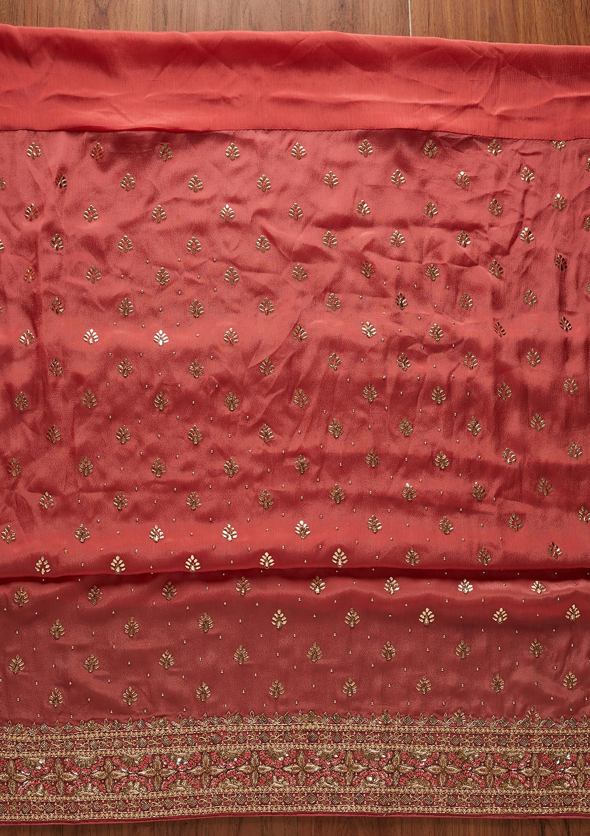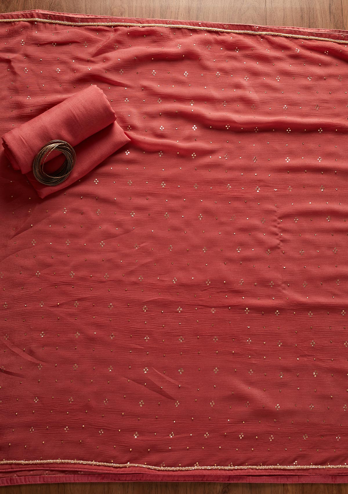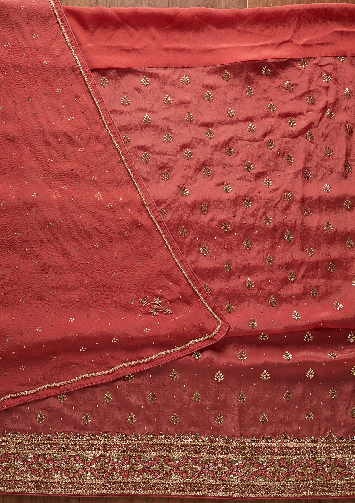 Onion Pink Salwar Suit In Semi Crepe Fabric. The Salwar Suit Is Embellished With Badla Embroidery. Accompanied with an unstitched bottom and dupatta. Comes With The Koskii Promise Of Premium Quality.