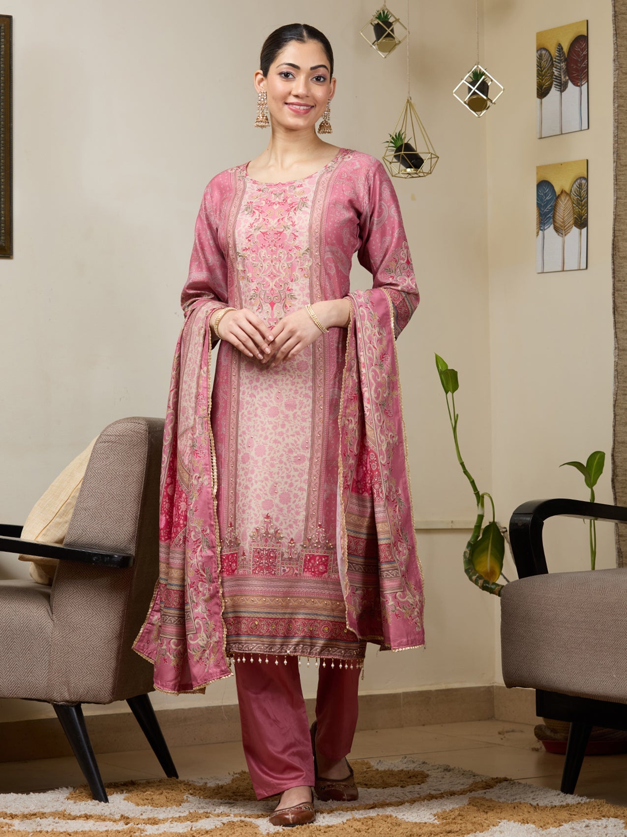 Onion Pink Stonework Tissue Readymade Salwar Suit