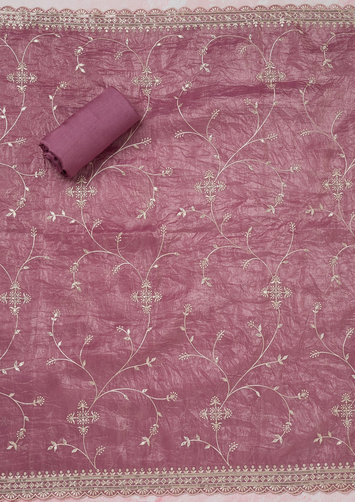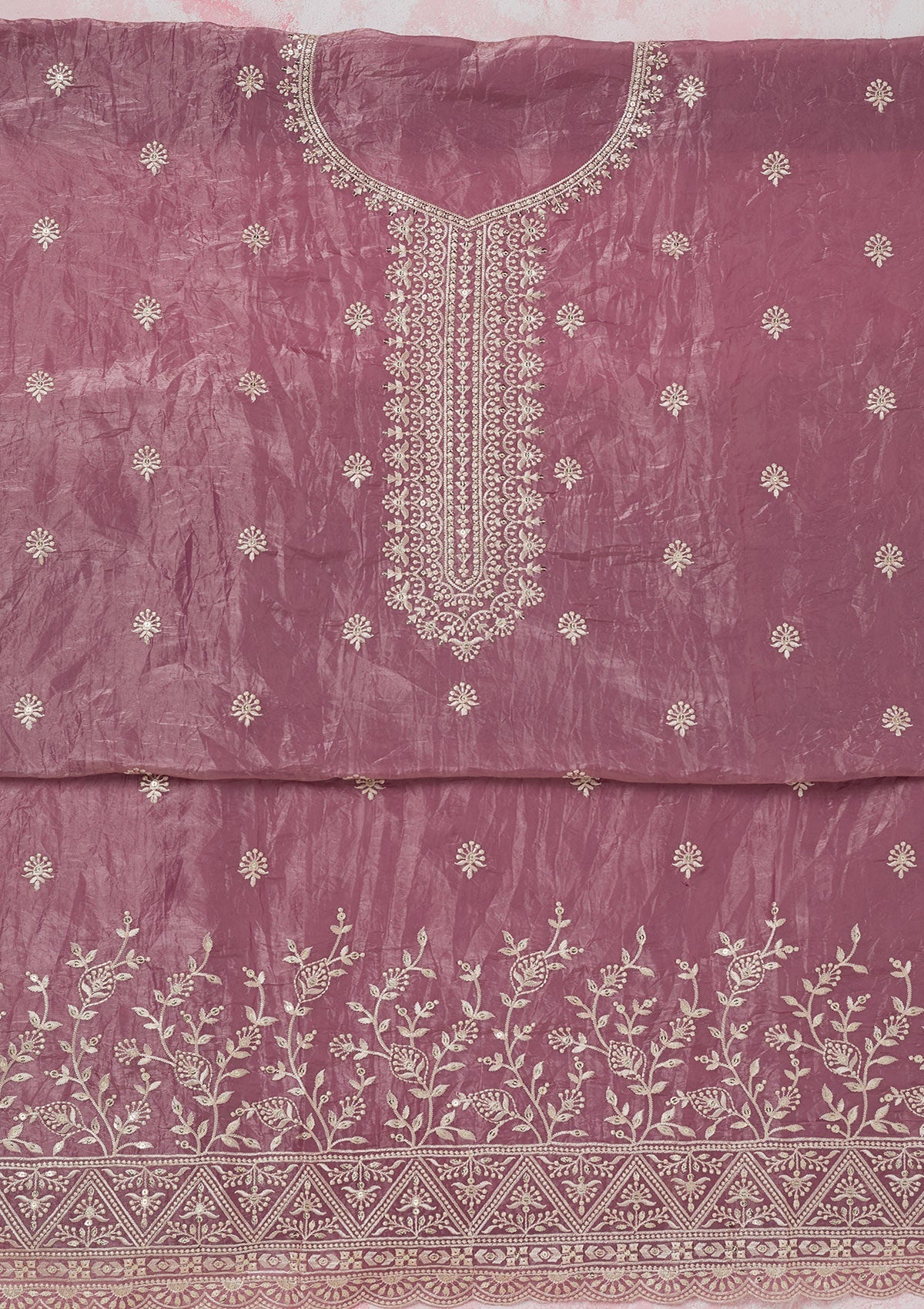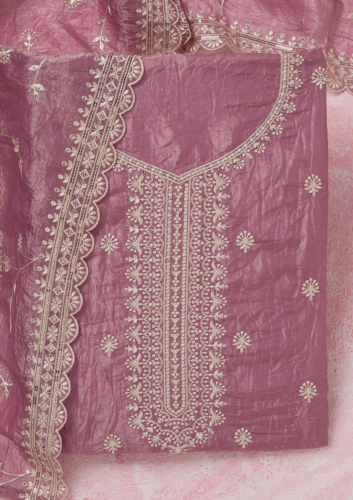 Onion Pink Threadwork Tissue Unstitched Salwar Suit