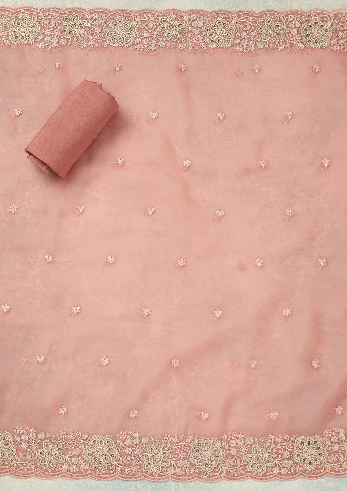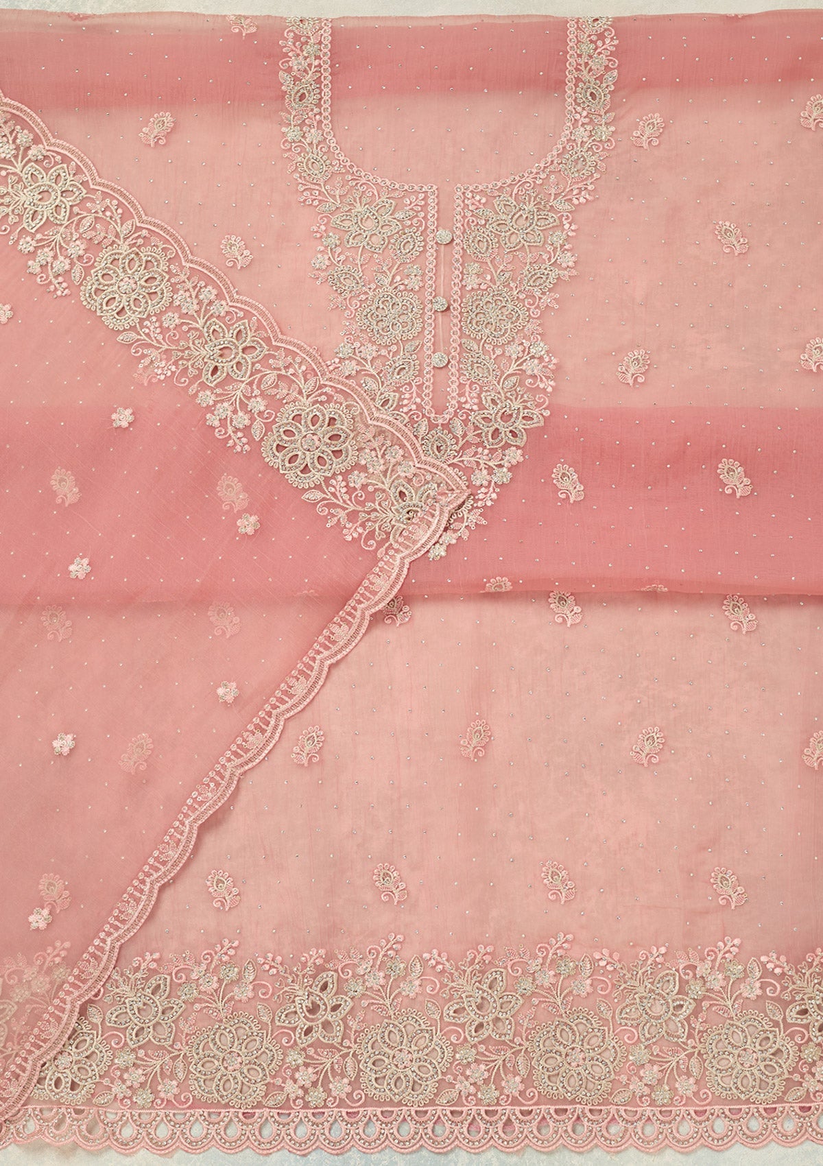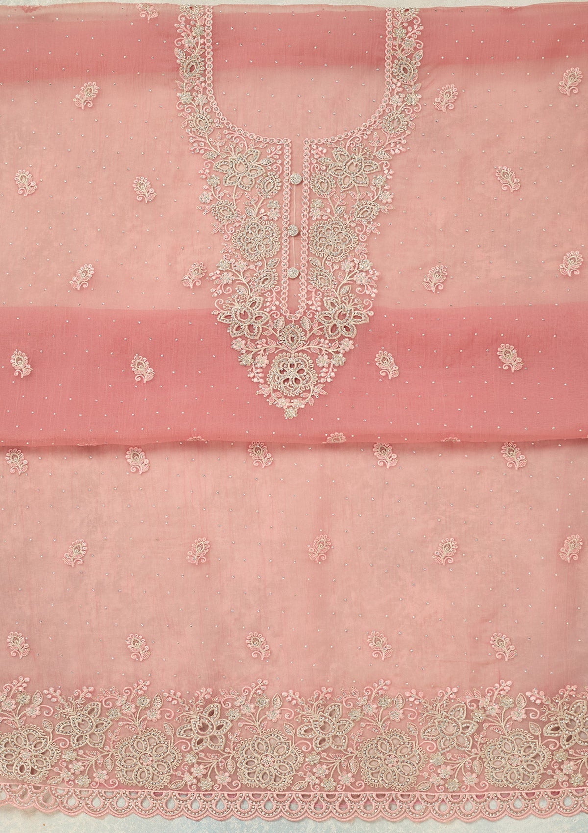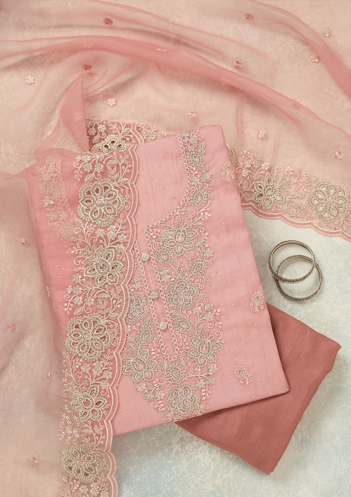 Onion Pink Threadwork Tissue Unstitched Salwar Suit