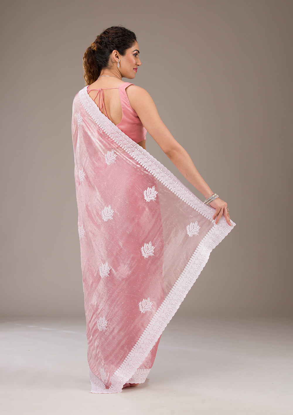 Onion Pink Threadwork Tissue Saree