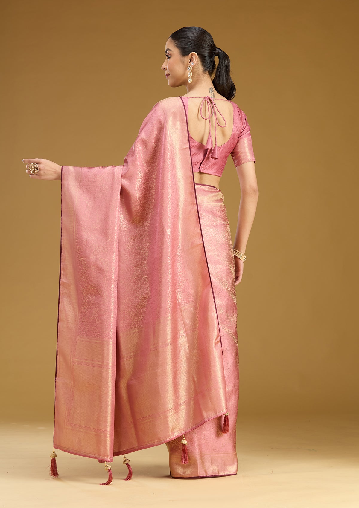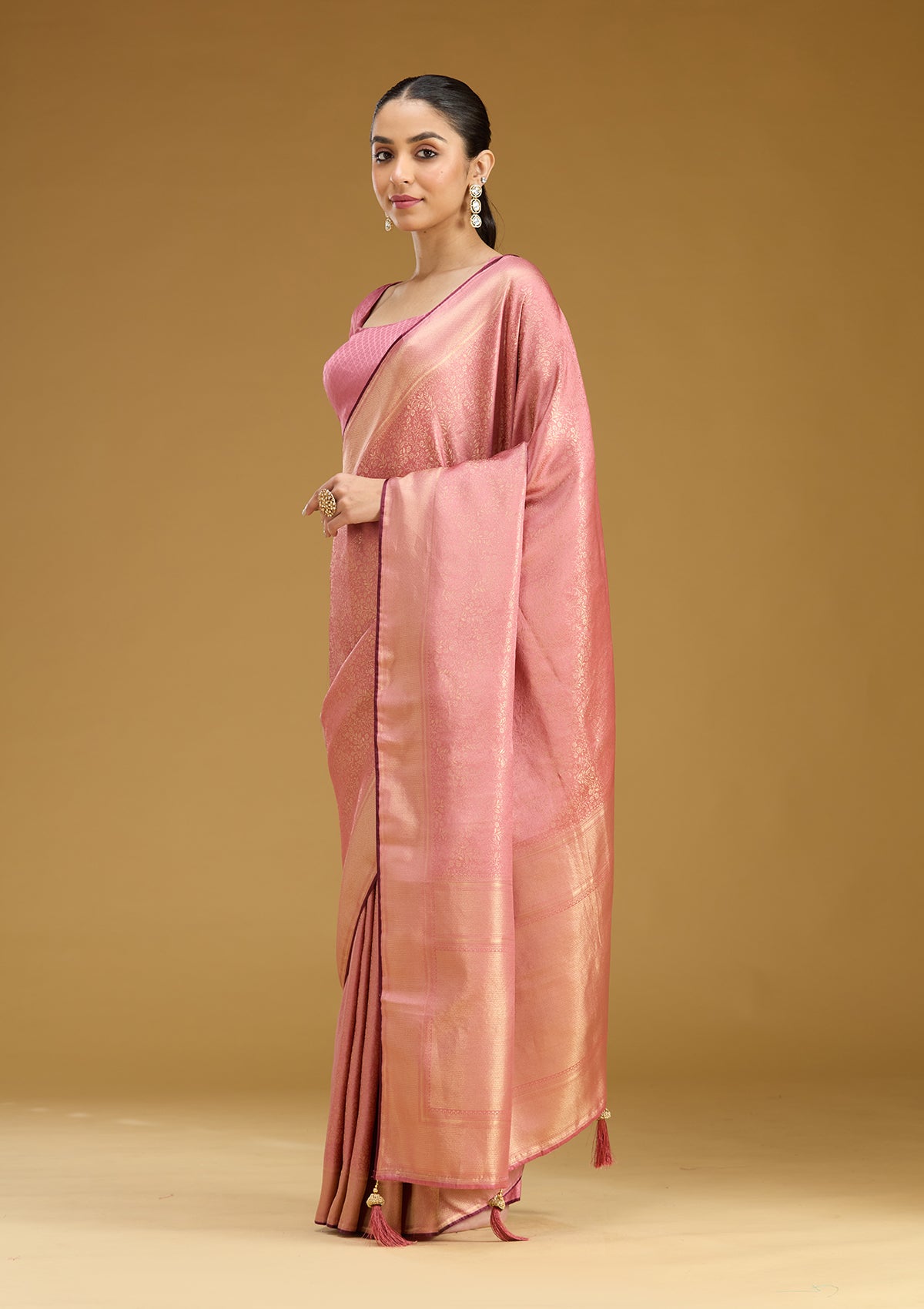 Onion Pink Zariwork Art Silk Saree
