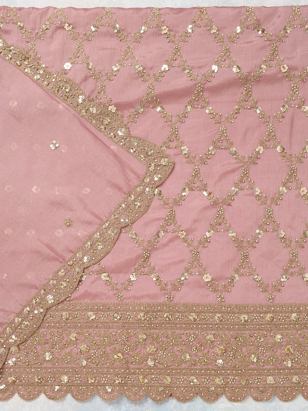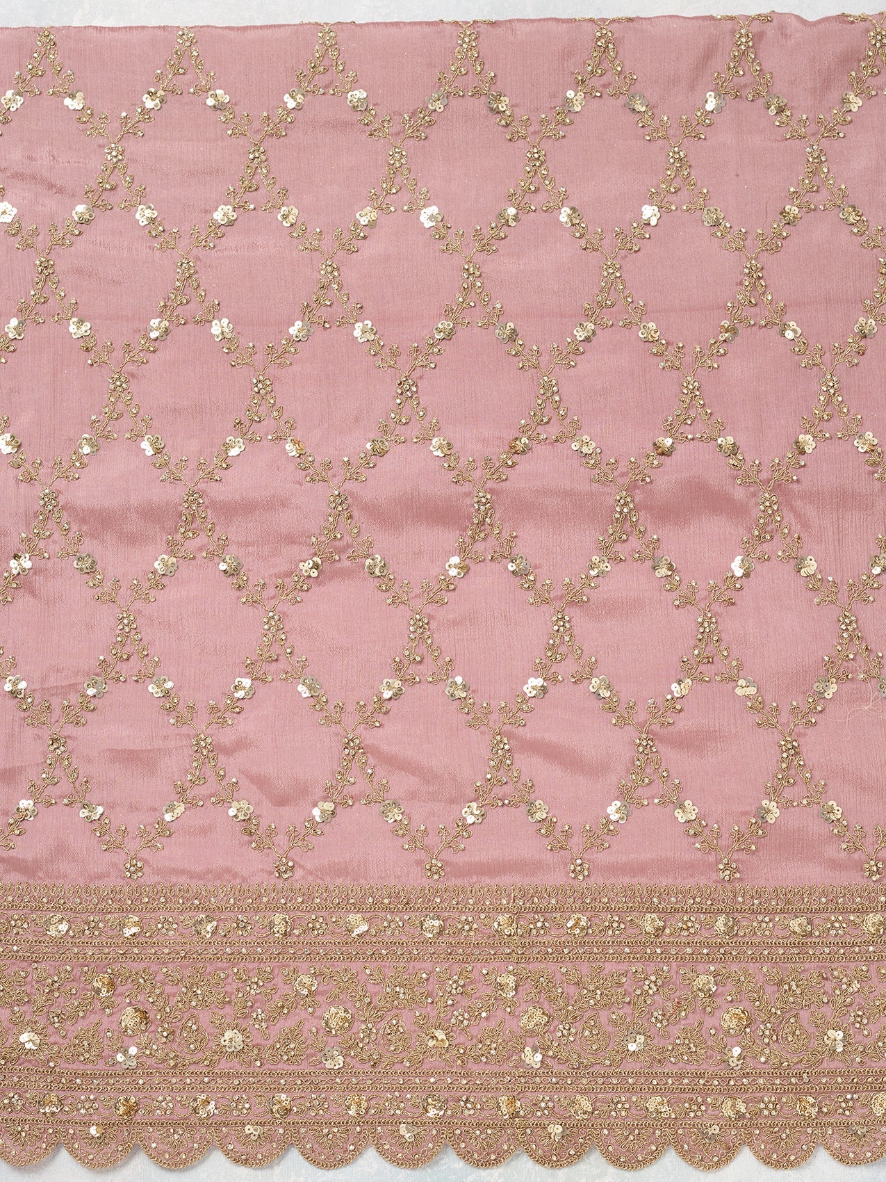 Onion Pink Zariwork (Gold) Chinon Unstitched Salwar Suit