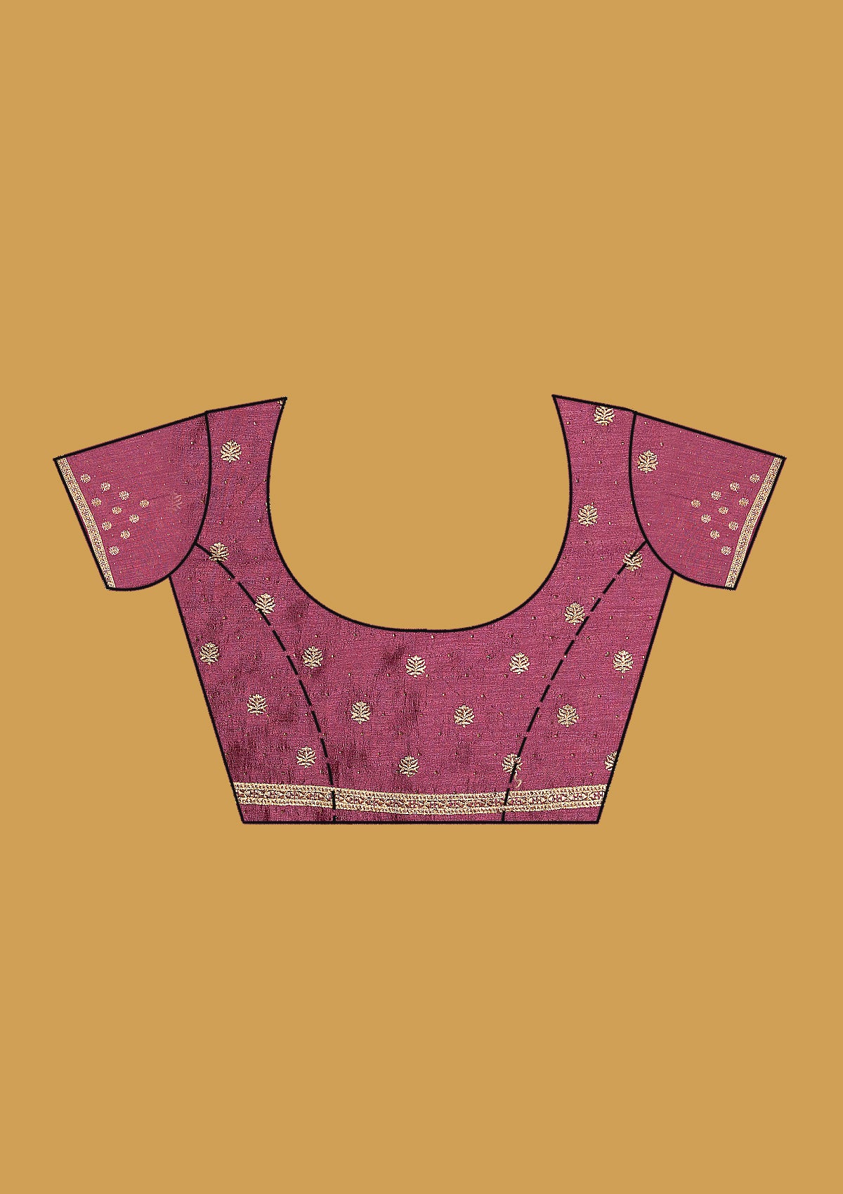 Onion Pink Saree in Soft Raw Silk fabric. The Saree is elevated with Zariwork (Gold) embroidery. It comes with an Unstitched blouse. Comes with the Koskii promise of premium quality.