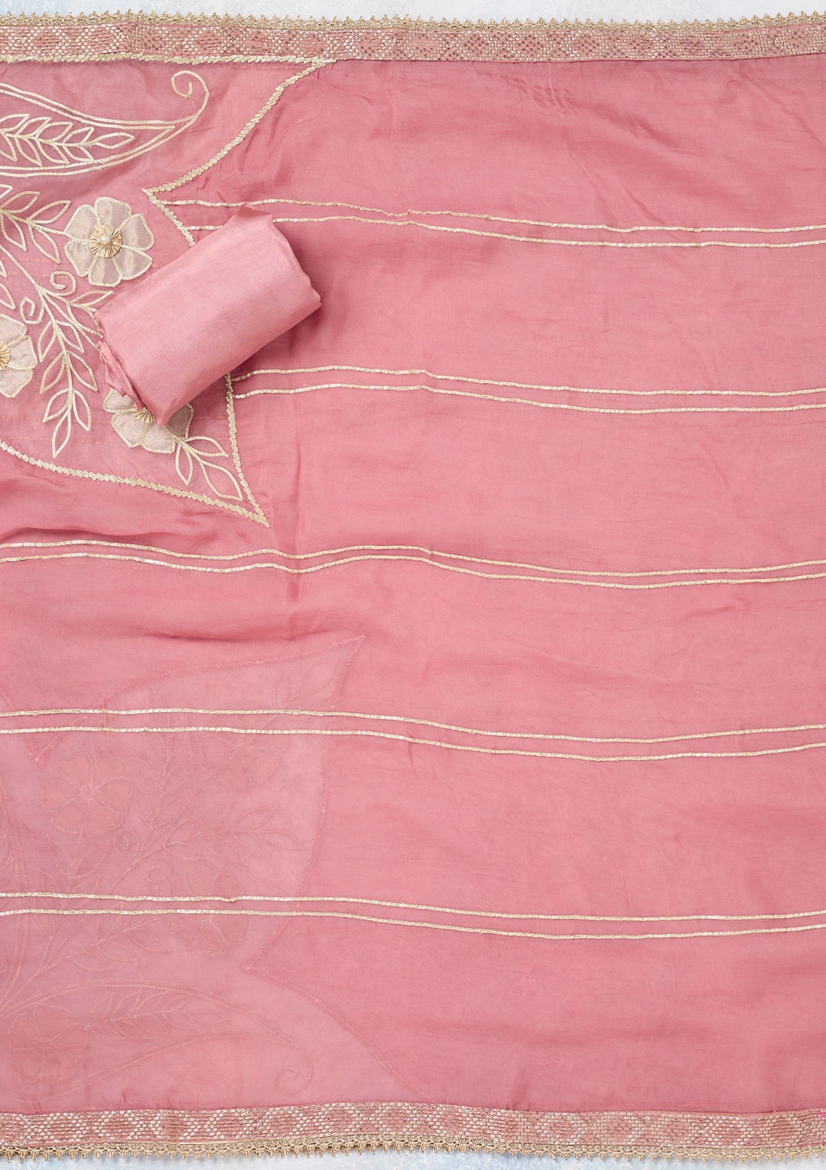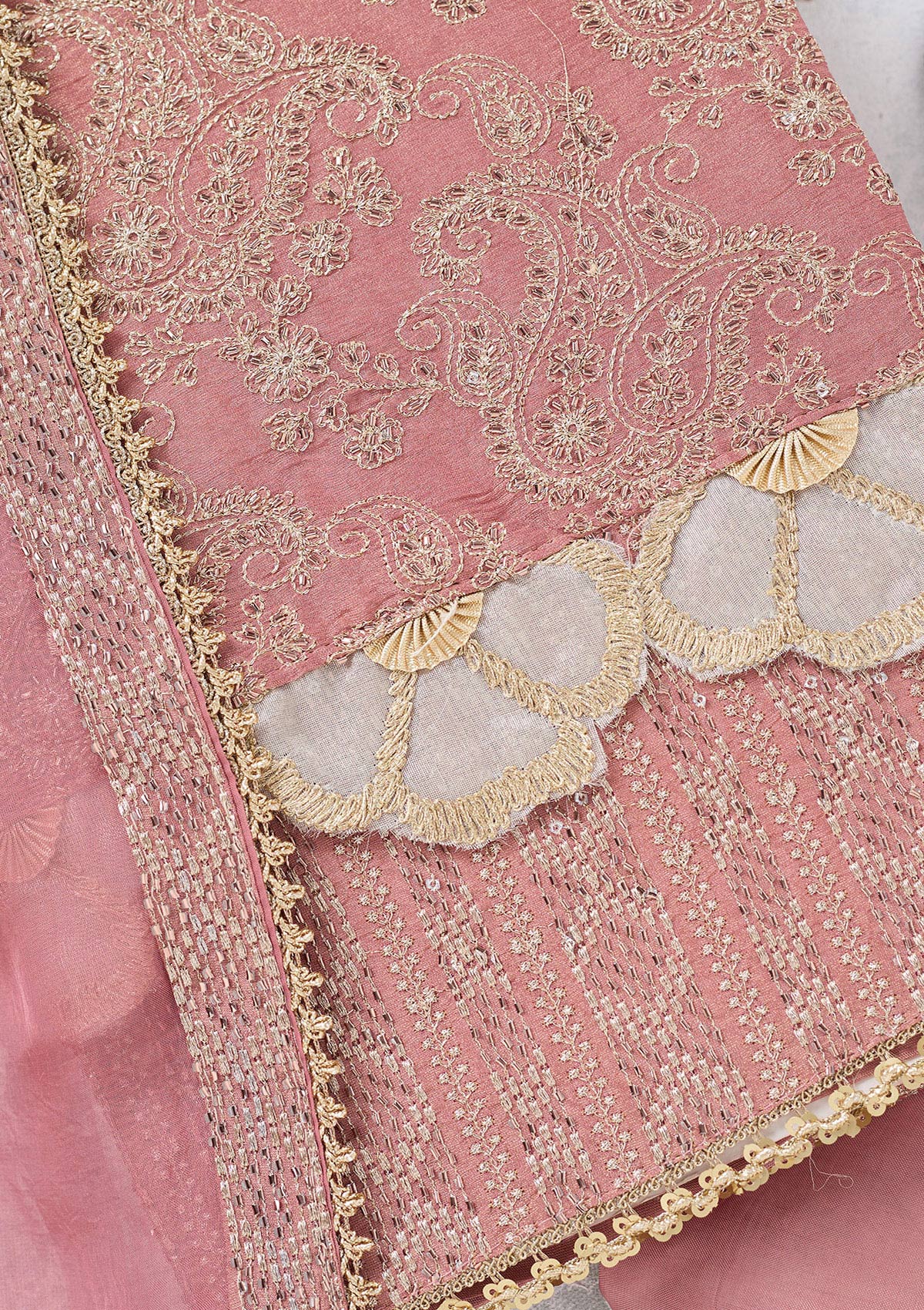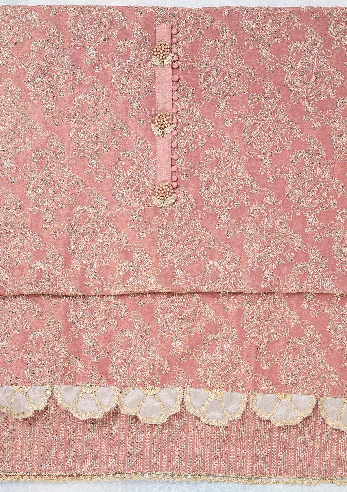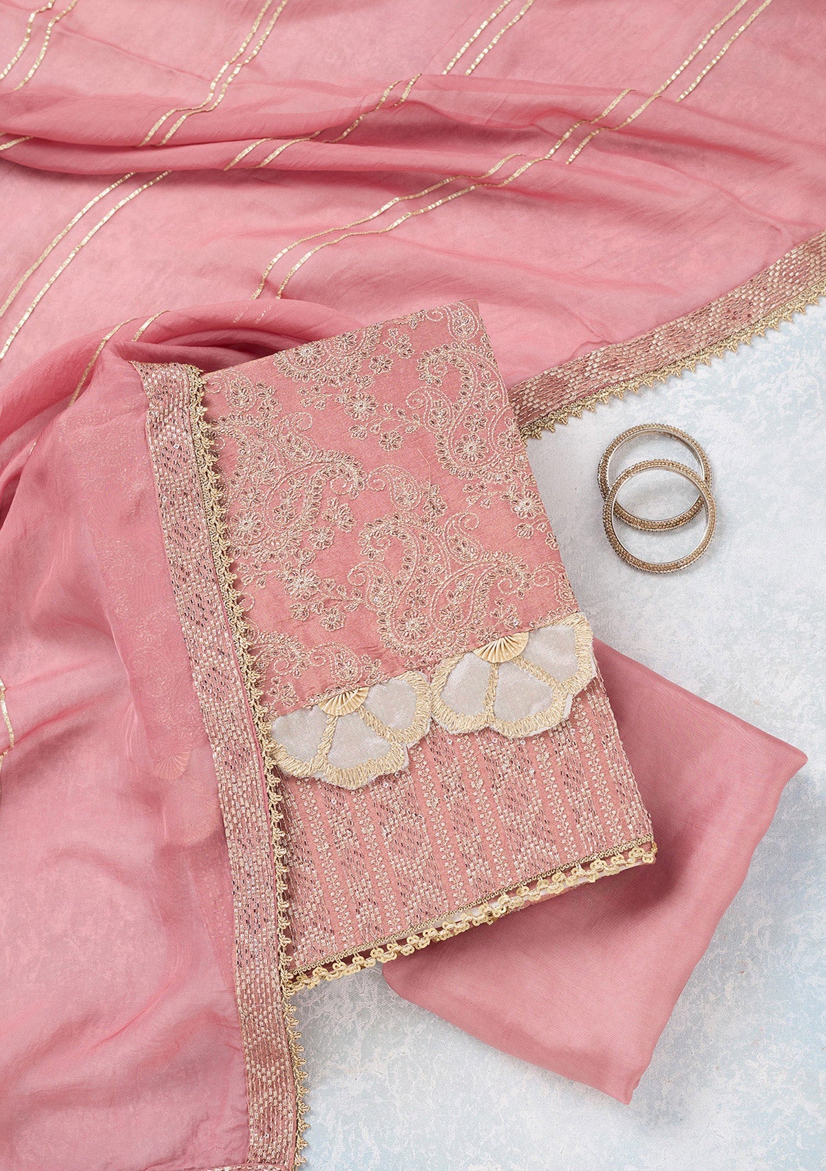 Onion Pink Zariwork Tissue Unstitched Salwar Suit